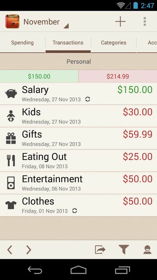 Harcamalar Takibi - Zamanınızı ve paranızı boşa harcamayı sevmiyor musunuz? O halde, bu basit ama çok etkili uygulama ile tüm parasal kaynaklarınızı kontrol edin. Mevcut harcamalarınızı kaydedebilir veya takvim kullanarak gelecekteki giderleri planlayabilirsiniz. Her zaman belirli bir yaşam alanına ne kadar para harcadığınızı bilmek için gruplar ve kategoriler halinde listeler oluşturun.