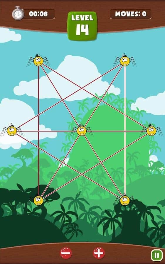 Örümcekler: İpleri Çöz – Android için minimalist bir oyundur, burada örümceği çözeceksiniz. Bu oyunda ana amacınız, örümcek ağını öyle çözmek ki, ipler kesişmesin. Zekânızı ve mantığınızı kullanın ve ağı mümkün olan en kısa sürede çözmeye çalışın. Eğer ağ birkaç noktada kesişirse, rengi bordo olur, kesişmiyorsa gri kalır. Bu oyunu boş zamanlarınızda oynayın ve keyifli vakit geçirin.