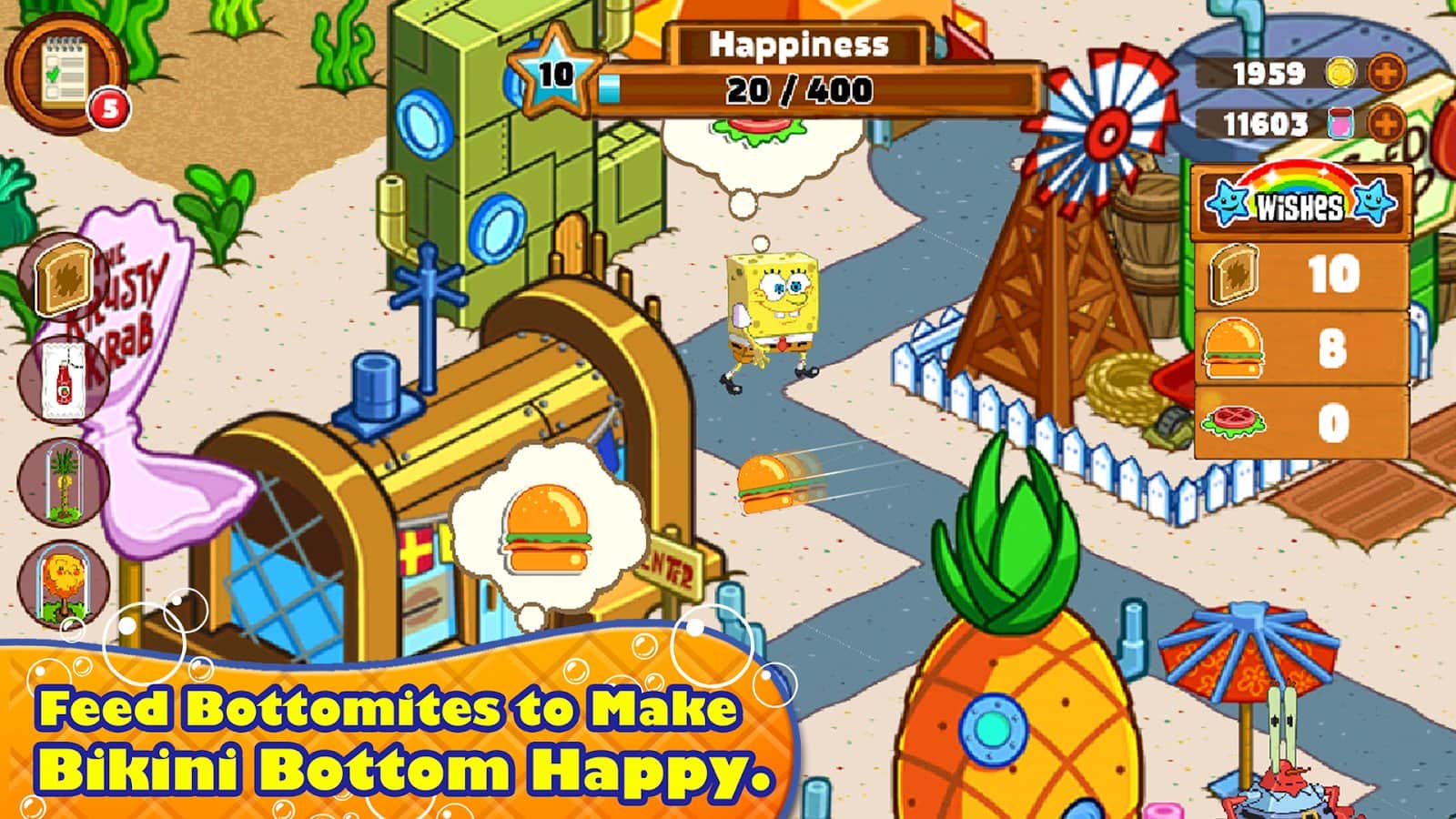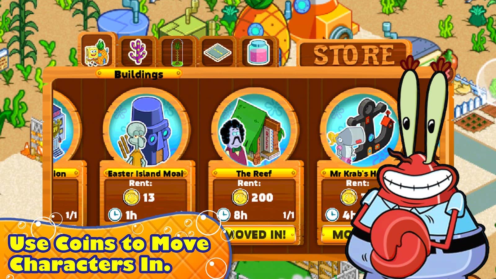 Sünger Bob: Bikini Bottom'ım (SpongeBob Moves In) - sevilen su altı kahramanı Sünger Bob hakkında Android için harika bir strateji oyunu. Göreviniz gerçek bir su altı şehri inşa etmek. Bu konuda size çizgi film kahramanları yardımcı olacak. Oyunun amacı belirli bir seviye mutluluk elde etmektir. Gerekli miktarı topladığınızda bir sonraki seviyeye geçersiniz. Oyunda iç para birimi vardır, paraları toplayarak binalar inşa edebilir ve çeşitli eşyalar satın alabilirsiniz.