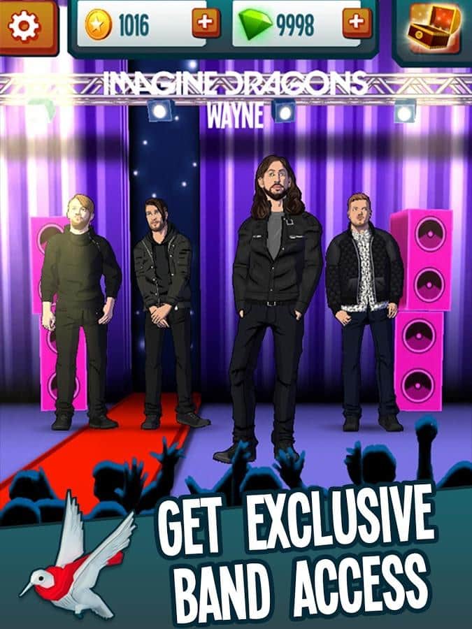 Sahne Koşusu - Imagine Dragons, Android için bir koşu oyunu olup, popüler Imagine Dragons grubunun her bir üyesi olarak oynayacaksınız. Bu oyun, kanser hastalarına yardım etmek amacıyla yaratılmıştır. Bu oyunu yükleyin ve Las Vegas ve Paris gibi büyük şehirlerin sokaklarında, bu sanatçıların tanınmış hitleri eşliğinde koşun. Bu oyunda, bu grup hakkında birçok yeni ve ilginç bilgi edinme fırsatınız olacak, onların görüntülerinin bulunduğu yeni fotoğraflar görecek ve sorular sorabileceksiniz. Oyun, aşırı engellerle dolu özgün seviyelerle sizi memnun edecek ve kahramanınızı çeşitli kostümlerle giydirip görünümünü aksesuarlarla tamamlamanıza olanak tanıyacak. Yol boyunca özel harfler toplayın ve bonus seviyeleri açın.