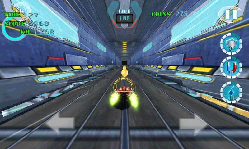 Yıldız Hızı: Turbo Yarış II - Android için yandan kaydırmalı bir yarış oyununun devamı. Navigasyon sensörü ile uzay geminizi kontrol ediyor ve yanınızdan geçen araçlarla engellere çarpmamaya çalışıyorsunuz. Yolda bonuslar ve paralar toplayın, uzay geminizi geliştirin ve maksimum hıza ulaşarak hız rekorlarınızı kırın.