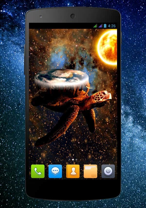 Yıldız Kaplumbağa Pro Canlı Duvar Kağıdı – uzun zaman önce İngiliz yazar Terry Pratchett, dev bir kaplumbağanın üzerinde duran büyük bir disk şeklindeki ilginç bir gezegenden bahsetmişti. Bu dünyada her şey tamamen farklı, fizik kuralları Dünya'dan farklı, ve sihir maddesel olmaktan çok daha fazlası. Kaplumbağa, uzay boşluğunda yavaşça yüzerek yükünü taşıyor.