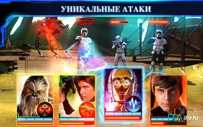 Yıldız Savaşları: Saldırı Takımı - Yıldız Savaşları filminden kahramanlarla bir başka kart RPG. Tanıdığınız kahramalardan oluşan bir takım kurun, silahlarını ve yeteneklerini geliştirin. Kendi saldırı grubunuzu oluşturup düşman ordularına karşı çıkmanız gerekecek. Oyun hikayesi tamamen filmin kahramanları etrafında dönüyor. Oyun sırasında düşmanlardan çeşitli eşyalar düşecek. Bunlarla kahramanlarınıza yeni yetenekler öğretebilirsiniz.