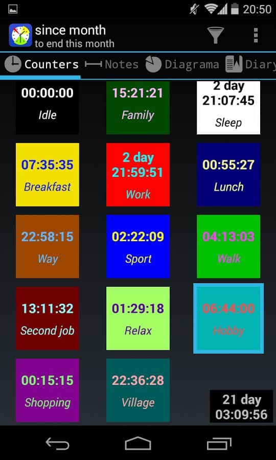 Zaman istatistikleri - zamanı değer verenler için harika bir Android uygulaması! Hangi eyleme ne kadar zaman harcadığınızı kolayca hesaplayabilir, olayların listelerini ve grafiklerini oluşturabilir, belirli olaylar için bildirim ayarlayabilir ve daha fazlasını yapabilirsiniz: