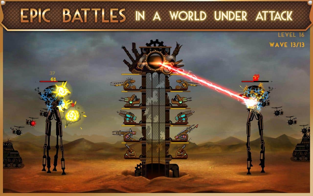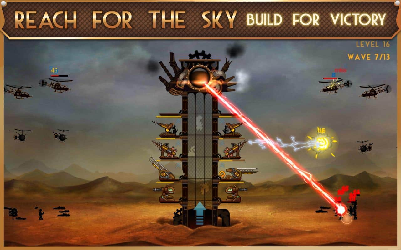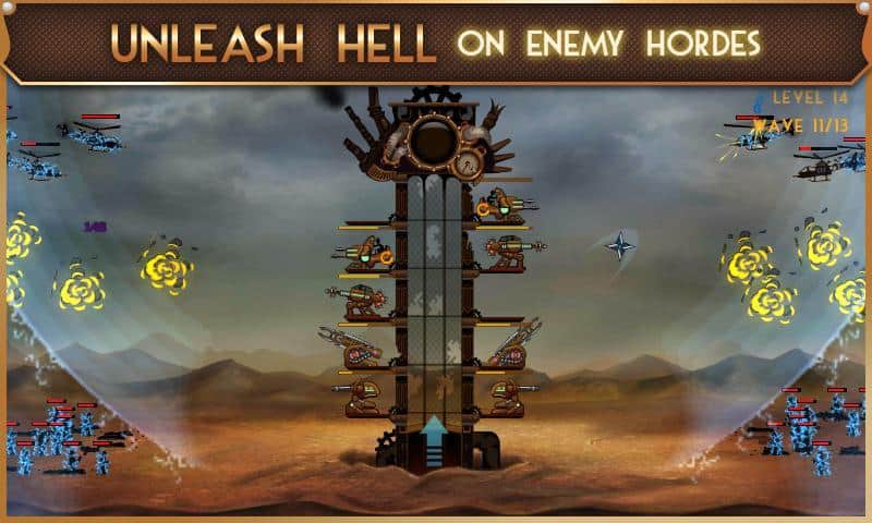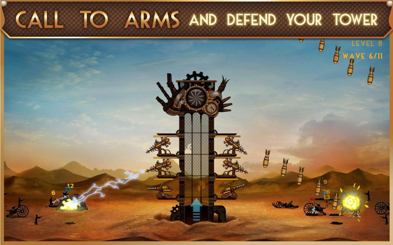 Steampunk Kulesi - Android için bir kule savunma türünde heyecan verici bir oyun. Kulelerinizi korumanız gereken bir oyunda, imparatorluk ordusunun piyadeleri, mekanik canavarlar ve uçaklarla savaşmak zorundasınız. Otomatik toplar, yıkıcı yıldırım saldırıları ve önüne çıkan her şeyi yok eden güçlü bir darbe gücü ile saldırın. Topları ve makineli tüfekleri düşmanı daha hızlı vuracak şekilde yerleştirin ve 7 farklı ödül kazanın. Tüm 20 seviyeyi geçin ve farklı savaş gücüne sahip tüm kuleleri açın.