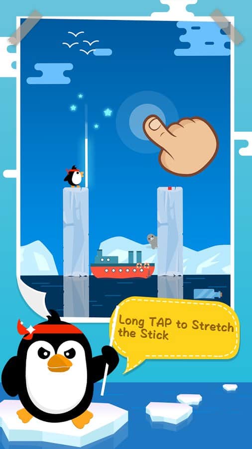 Stick PenPen – Eğlenceli Yolculuk – küçük penguene tehlikeli bir yolu geçmesine ve hedefe ulaşmasına yardım edin. Bu oyunda, Antarktika'da tehlikeli bir yolculuğa çıkmaya karar veren penguene yardım edeceksiniz. Penguenimiz, bu amaçla buzul blokları arasında mesafeye bağlı olarak uzunluğu değişen özel bir çubuk kullanarak hareket ediyor. Telefonunuzun ekranına dokunun ve bir sonraki buzul bloğuna olan tam mesafeyi doğru bir şekilde belirleyin. Eğer hata yaparsanız, pengueniniz okyanusa düşer. Pengueni tüm seviyelerden geçirerek bu oyundaki kendi rekorunuzu belirleyin.