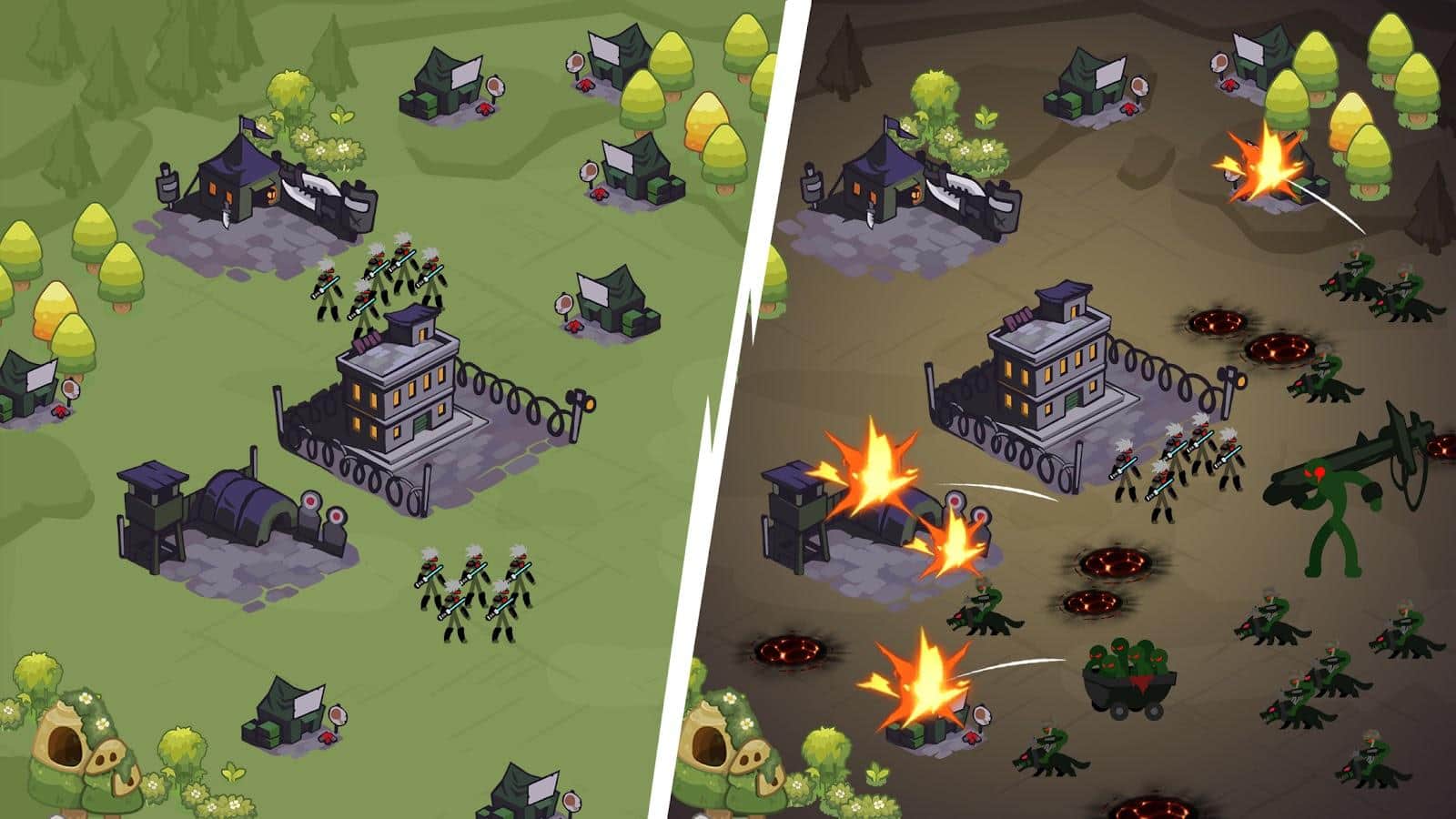 Stick World Z: Zombi Savaşı TD - Karanlık krallığınızı sardı ve karanlıktan bir canavar ordusu çıkıyor. Göreviniz, topraklarınızı korumak ve düşmanın saldırısını püskürtmek! Stickman'ların efsanevi savunucusu olmaya hazır mısınız? Etkili yerlerde kuleler inşa ederek geçilmez bir savunma hattı oluşturun ve artan tehditlerle başa çıkmak için kulelerinizi sürekli olarak geliştirin. Gündüz kaynak toplayın, savunmanızı güçlendirin ve stratejinizi oluşturun, gece ise düşman güçlendiğinde şiddetli saldırılara hazırlanın.