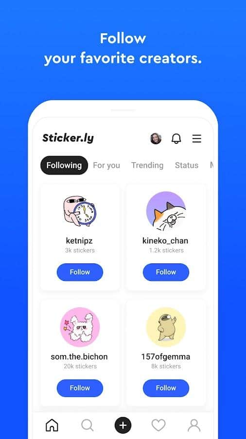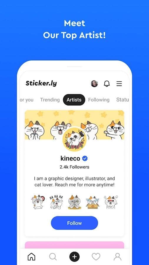- Favori yaratıcılarınıza veya sanatçılara abone olun, böylece yeni WA çıkartmalarını anında alın.