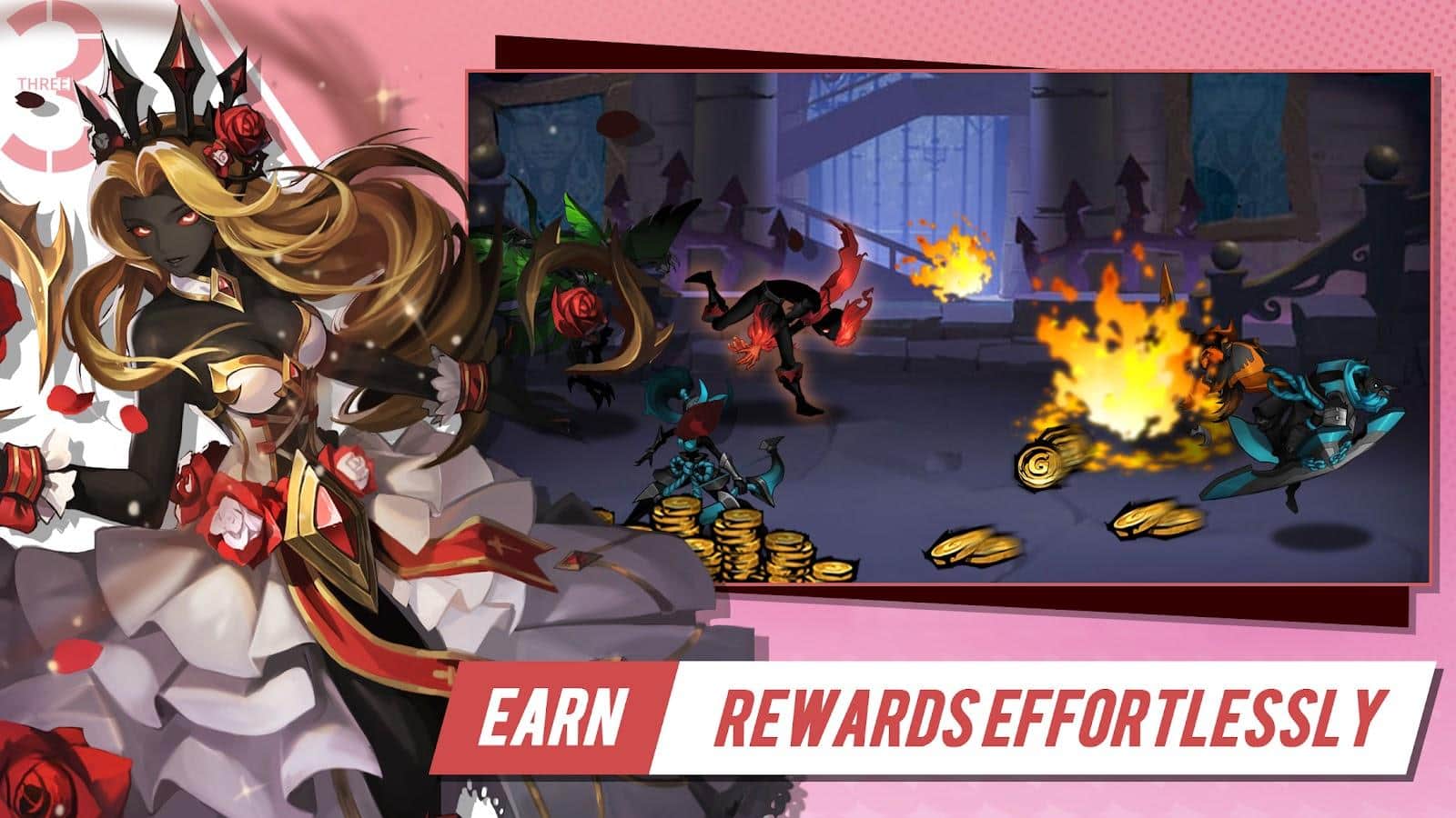 - AFK sistemi sayesinde, kahramanlarınız oyunda olmasanız bile savaşa devam eder ve gelişir.
