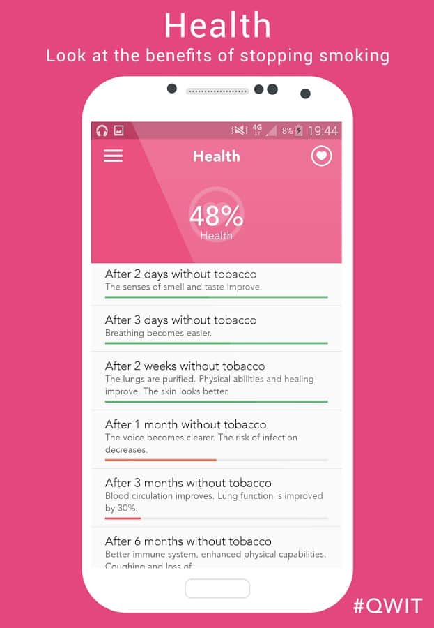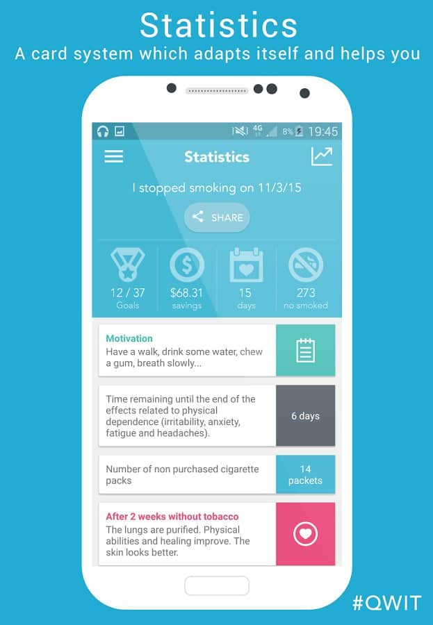 Sigara Bırakma Pro – sigara içme ile savaşmanıza yardımcı olacak bir Android uygulamasıdır. Sigara içmeyi bırakmaya karar verdiğinizde, uygulama sağlığınızdaki iyileşmeler hakkında bilgi verecek ve fiziksel bağımlılığınız hakkında bilgi sağlayacaktır. Ayrıca, Sigara Bırakma Pro, sigarayı bıraktığınızdan beri bütçenizde ne kadar tasarruf yaptığınızı gösterecektir. Uygulama, sigarayı bırakma nedenlerinizi hatırlatacak ve masaüstü widget'ı aracılığıyla başarılarınızı takip etmenizi sağlayacaktır. Sigara içme ile mücadeledeki başarılarınızı sosyal medya ve e-posta aracılığıyla arkadaşlarınızla paylaşın.