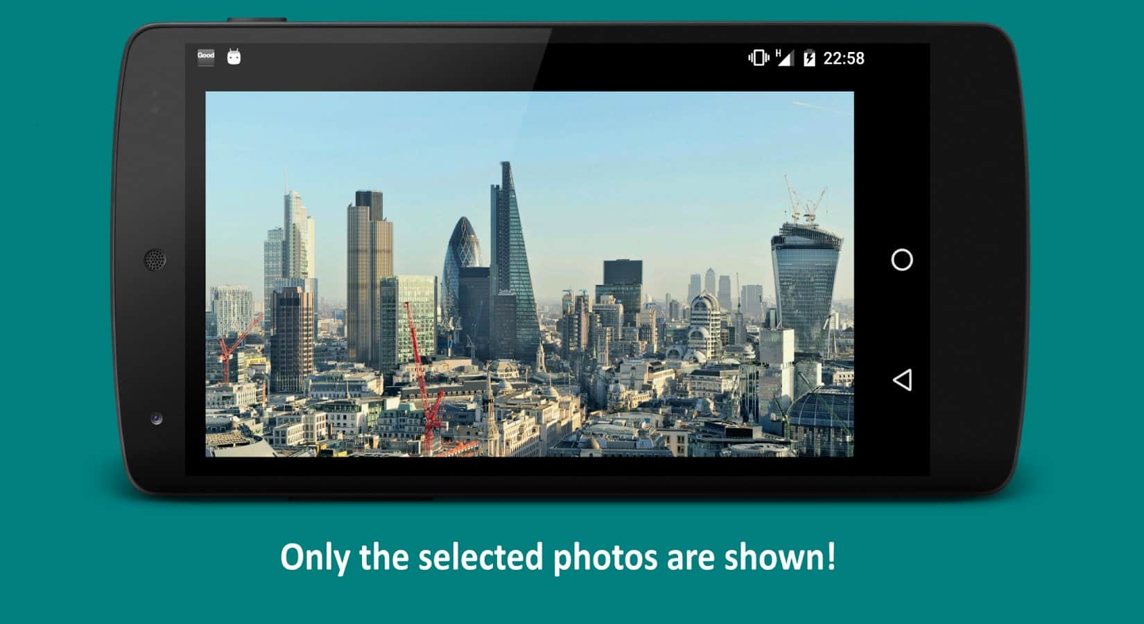 Program, sade "materyal" arayüzünde tasarlanmıştır ve galerinizdeki tüm görüntülere erişim sağlar. Orada ilginizi çeken fotoğrafları seçersiniz ve ardından telefonu izleyicilere verirsiniz. Burada tam anlamıyla bir kilit ekranı olmadığını anlamak önemlidir: şifre veya grafik anahtar mevcut değildir, ancak yine de bazı izin sınırlarını belirler.