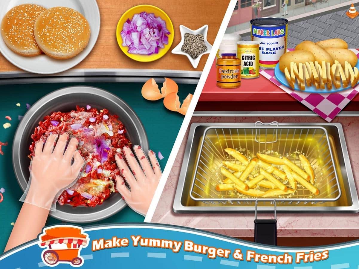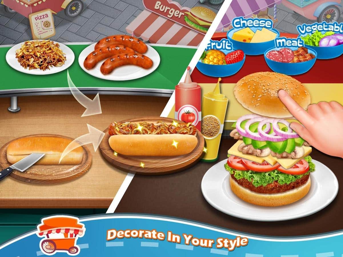 Sokak Yemeği Tezgahı Pişirme Oyunu – Android için bir oyundur, burada sokak atıştırmalığı şefi olarak görev alacaksınız. Bu oyunda, hot dog, nachos, hamburger, pizza ve patates kızartması gibi çeşitli hızlı yemekler hazırlayacaksınız. Tüm bu yemekleri taze ve lezzetli malzemelerle hazırlayın ve ziyaretçilerinize sunun. Talimatları izleyin ve tüm görevleri adım adım yerine getirirken müşterinizi uzun süre bekletmeyin. İşinizi kaliteli ve hızlı bir şekilde yapmak için birçok mutfak gereci ve alet kullanın. Çeşitli yemekler hazırlayın ve bunları yeşillik ve soslarla süsleyin. Oyun, oyunculara basit ve anlaşılır bir kontrol sunmanın yanı sıra harika grafiklerle de keyif verecek.