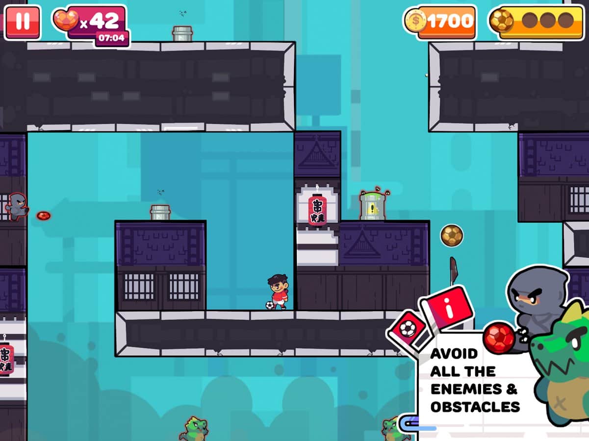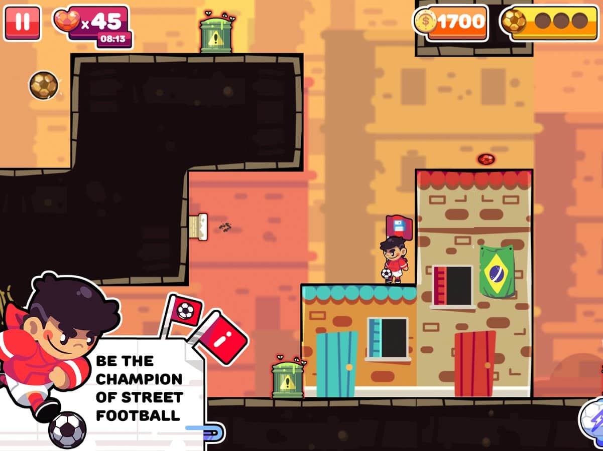 Sokak Ligi – Android'de bir platform oyunu, burada futbolcunun gol atmasına yardım edeceksiniz. Bu oyunda futbolcuyu ekrana parmağınızla bir kez dokunarak kontrol edeceksiniz ve böylece onun koşmasını, zıplamasını ve karşınıza çıkan sayısız rakipten kaçınmasını sağlayacaksınız. En iyi oyuncu olduğunuzu kanıtlayın ve karşılaştığınız rakip kalabalığı ve engeller sizi durduramaz. Çeşitli numaralar ve başarılar yapın ve değerli ödüller kazanın. Tüm dünyadan oyuncularla çok oyunculu modda oynayın ve kahramanınızın ne kadar hızlı olduğunu gösterin, rakip kaleye gol atın.