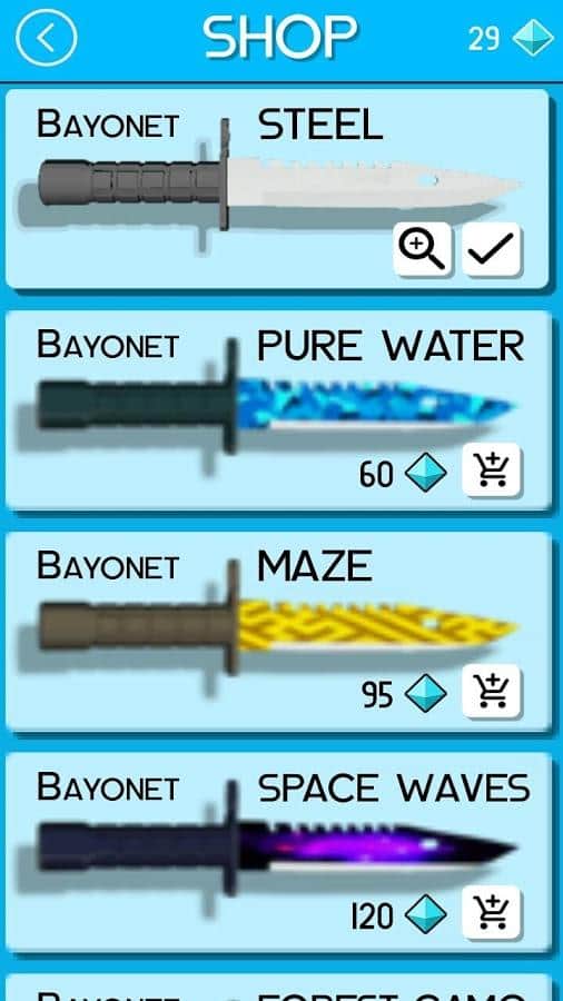 Bıçakları Vur – Android için sıradışı bir arcade oyunu, burada bir bıçakla oynamak ve onu çeşitli nesnelerin üzerinde hareket ettirmek zorundasınız. Parmaklarınızın çevikliğine ve mükemmel reflekslerinize güvenin ve bıçağı masalar, komodinler ve dolaplar üzerinde hareket ettirin, böylece bıçağınızın yere düşmemesini sağlayın. Kristalleri toplayın ve bıçağınızı kendi zevkinize göre özelleştirmek için harcayabileceğiniz paralar kazanın. Oyunda, atışlarınızın doğruluğunu ve hassasiyetini test edebileceğiniz çeşitli oyun modları da mevcut. Rekorlar koyun ve sizi eşsiz tasarımıyla mutlu edecek yeni bıçakların kilidini açın.