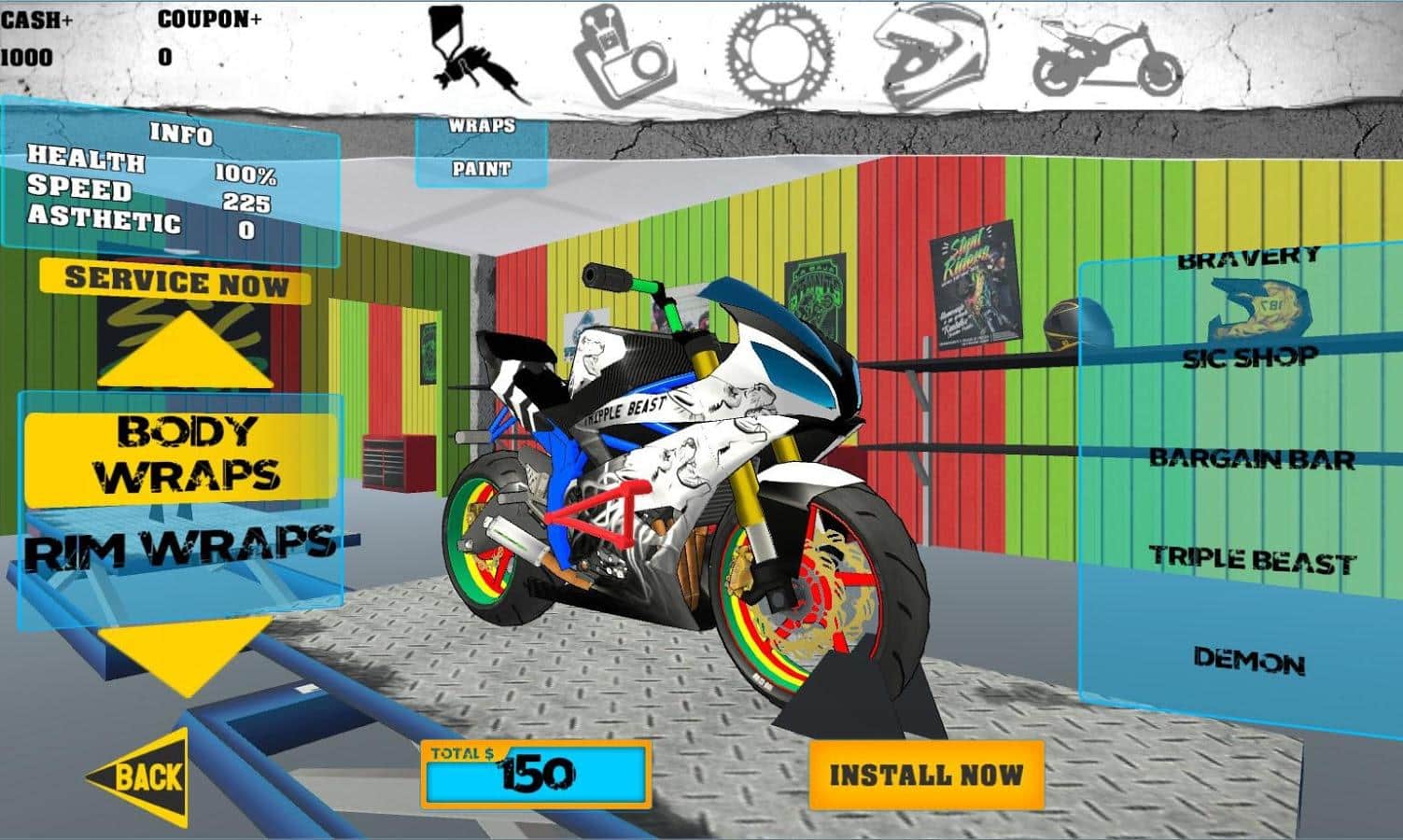 Spor motosikleti ile sadece düz yolda uçmakla kalmaz, aynı zamanda Aksiyon bisikleti freestyle pistinde çılgın numaralar da yapabilirsin. Güçlü bir bisikletin direksiyonuna geç ve kendi tekniklerini oluşturmak için birden fazla standart numarayı birleştirerek baş döndürücü numaraları öğren. Bunun için motosikletini zamanında güncellemeye ve mevcut ihtiyaçlara göre dikkatlice geliştirmeye özen göstermelisin; bu konuda yüzlerce parça sana yardımcı olacaktır. En iyi bisikleti satın al, onu tanınmaz hale getir ve en baş döndürücü numarayı sergile!