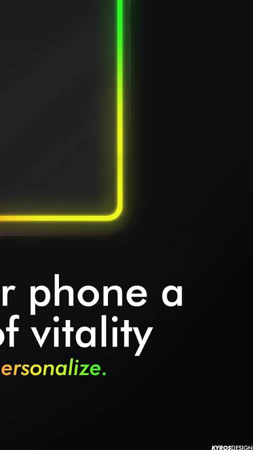 Styders - Stilizasyon Kenarları - Android için canlı duvar kağıtları. Bu uygulama ile ekranın etrafına renkli bir çerçeve ekleyebilirsiniz. Kendi renklerinizi ve animasyonunuzu ayarlayın, çerçevenin kalınlığını ve köşe yuvarlaklığını seçin, parlaklığı değiştirin ve duvar kağıdını ayarlayın. Ayrıca, ekranın üst kısmında kesim desteğini de açabilirsiniz. Ayrıca, kendi arka plan resminizi yükleyip ona çerçeve uygulayabilirsiniz.