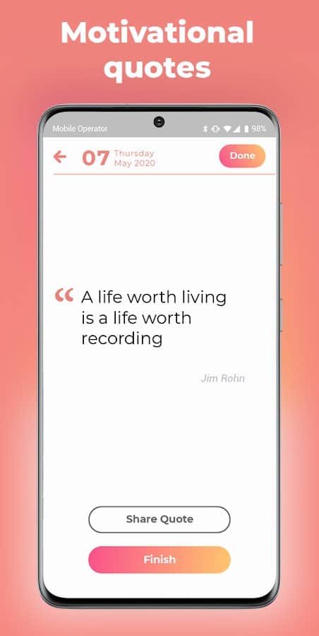 - Her ilerlemeden sonra tematik motive edici alıntılar;