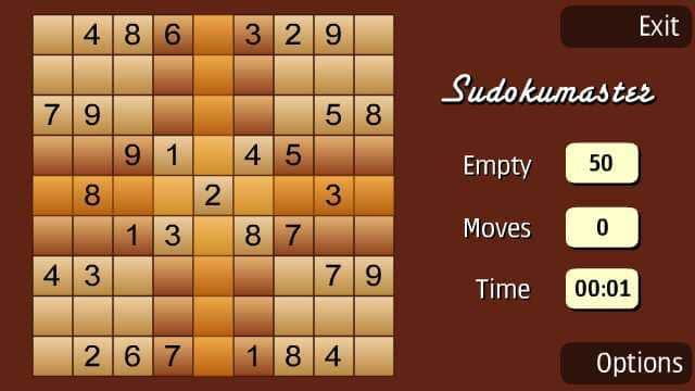 Dünyada tanınan klasik bir oyun - İndir Sudokumaster artık symbian akıllı telefonlar için de mevcut. Her zamanki gibi, 1 ile 9 arasındaki sayılarla kareleri doldurmanız gerekiyor, böylece yatayda, dikeyde ve karelerin içinde aynı sayılar olmamalıdır. Her şey basit, ama sadece başlangıç seviyelerinde. Ne kadar ileri gidebilirsin? Kareler ve sayılar üzerinde beyin fırtınası yapmayı dene!