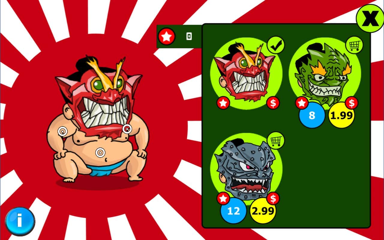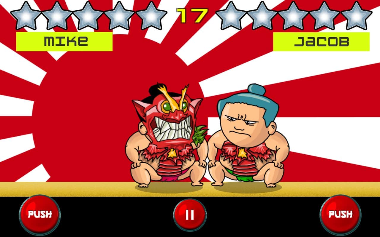 SUMO KRALI – bir sumo güreşçisi olarak mücadele edeceğiniz ve her yol ile zafer kazanmanız gereken bir oyun. Arkadaşlarınızla aynı cihazda oynayın, rakibinizi alandan atmak için butona basın. Kırmızı butona ne kadar hızlı basarsanız, sumo güreşçiniz o kadar hızlı hareket eder. Arkadaşlarınızla, rastgele oyuncularla ve yapay zekaya karşı oynarken en güçlü olduğunuzu kanıtlayın, rakiplerinizi yenin ve korkutucu maskeleri deneyerek kahramanınızı geliştirin. Tartışmasız bir zafer için hazırlanın ve birinci olmak için neler yapabileceğinizi gösterin.