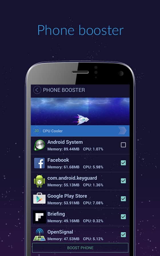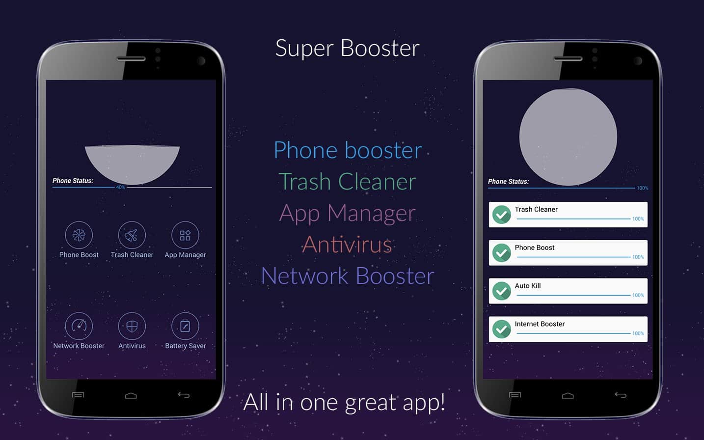 Super Booster Pro - Akıllı telefonunuzun performansını sadece bir tıklama ile artırın. Dolu belleği temizleyin veya yalnızca ekrana bir dokunuşla hızınızı artırın. Bu uygulama, birçok ayar yapmayı sevmeyen ve akıllı telefonunun daha hızlı çalışmasını isteyenler için oluşturulmuştur. Elbette, gerekli dosyalarınızın silinmesinden korkuyorsanız, hangi klasörlerin dokunulmaz kalması gerektiğini seçebilirsiniz, böylece bu uygulama yalnızca oyunları sildikten sonra kalan ve sizin için gereksiz olan dosyaları siler.