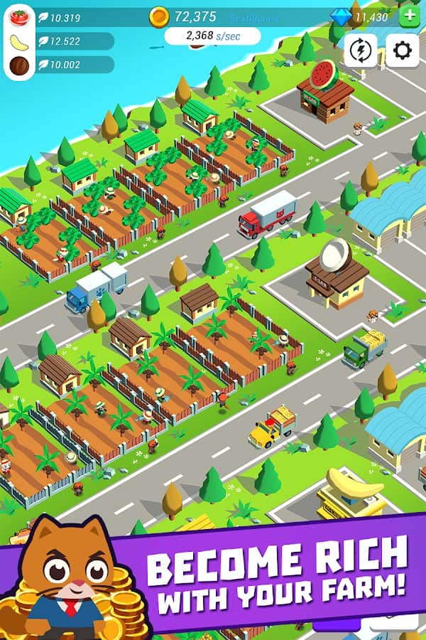 Süper Tembel Kediler - Dokunmalı Tarım – sevimli kedileri yönetin ve onlara çiftlikte çeşitli meyve ve sebzeleri yetiştirmelerine yardımcı olun. Ana göreviniz, telefonunuzun veya tabletinizin ekranına olabildiğince sık dokunmak ve bu şekilde ürün ekmek ve hasat etmek olacak. Bu oyunda en başarılı çiftçi olmaya çalışın ve mümkün olduğunca çok para ve ödül kazanın. Çiftliğinizi genişletin ve geliştirin, ayrıca oyunun sunduğu çeşitli görevleri ve misyonları yerine getirin. Farklı uzmanlıklara sahip kedileri çiftliğinize işe alın ve çeşitli binalar ve yapılar inşa edin.