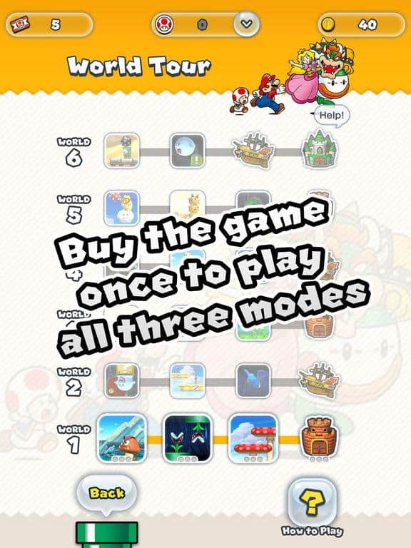 İlk açılışta veya ekranın sağ alt köşesindeki Dünya Turu seçeneği ile izlenebilen 'Nasıl Oynanır' eğitimi artık daha anlaşılır. Mario'nun özel hareketleri, pembe paralar ve Super Mario Run oyunundaki diğer seçenekler hakkında daha fazla bilgi almak isterseniz 'Nasıl Oynanır' bölümüne bakabilirsiniz.