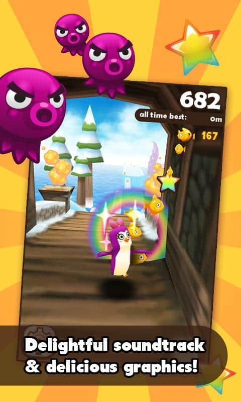 Süper Penguenler - Android için bir koşucu türü oyunu, yani koşmanız ve koşmanız gerekecek, çeşitli bonuslar toplayarak. Küçük cesur penguenle oynarken, ahtapotun tentaklerine yakalanan arkadaşlarını kurtarmanız gerekiyor. Acele etmelisiniz, mümkün olduğunca hızlı koşun, aksi takdirde arkadaşlarınız ahtapotun akşam yemeği olacaklar.