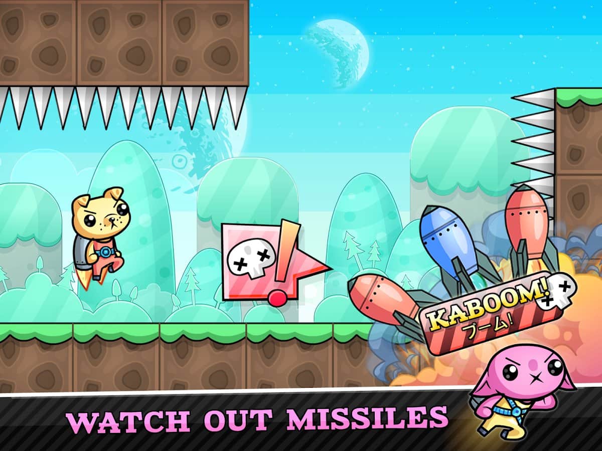Süper Roket Hayvanlar – Android için bir platform oyunu, burada küçük uçan hayvanları kontrol edeceksiniz. Seviyenin başında hayvanınız bir toptan fırlatılır ve oldukça büyük bir mesafe uçar, ardından yolundaki tüm engelleri aşmaya çalışarak ve mümkün olduğunca çok mesafe kat etmeye çalışarak onu yönetmeniz gerekir ve tüm paraları toplamalısınız. Koşun, zıplayın ve roket sırt çantasıyla uçun ve oyun sırasında kahramanınızı ve sırt çantasını güncelleyerek rekorlar kırın. Farklı gezegenleri keşfedin ve tüm oyunun kahramanlarını açmaya çalışarak 20 sonsuz seviyeyi geçin. Hayvanlarınıza çeşitli kıyafetler giydirin ve onlara şapkalar satın alın.