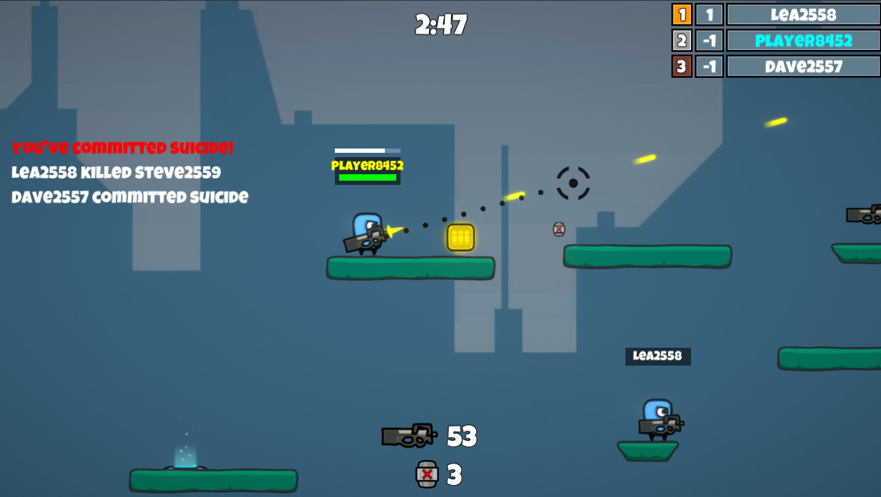 Super Shape Shooter, geometrik şekillerin çılgın çatışmalara girdiği dinamik ve eğlenceli bir 2D çevrimiçi nişancı oyunudur! Üç savaşçıdan birini seçin, arenalarda zıplayın, ateş edin, arkadaşlarınızla veya botlarla dövüşün ve diğerlerinden sıyrılmak için birçok eğlenceli şapka toplayın. Altı farklı haritada keyifli ve hızlı bir aksiyon sizi bekliyor!
