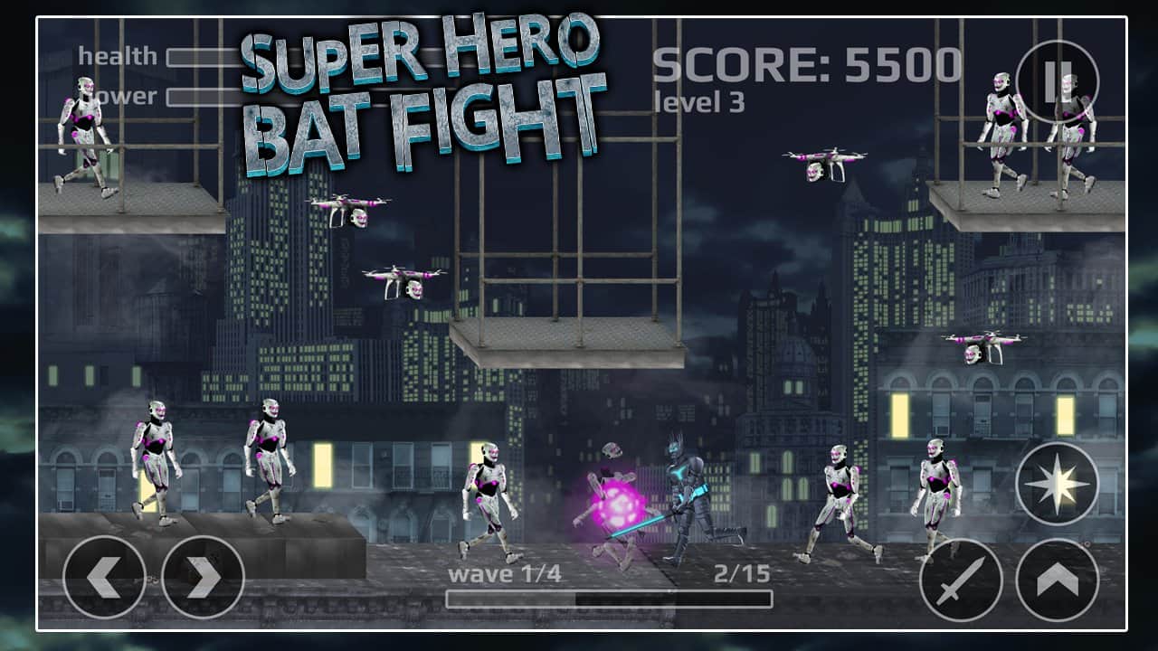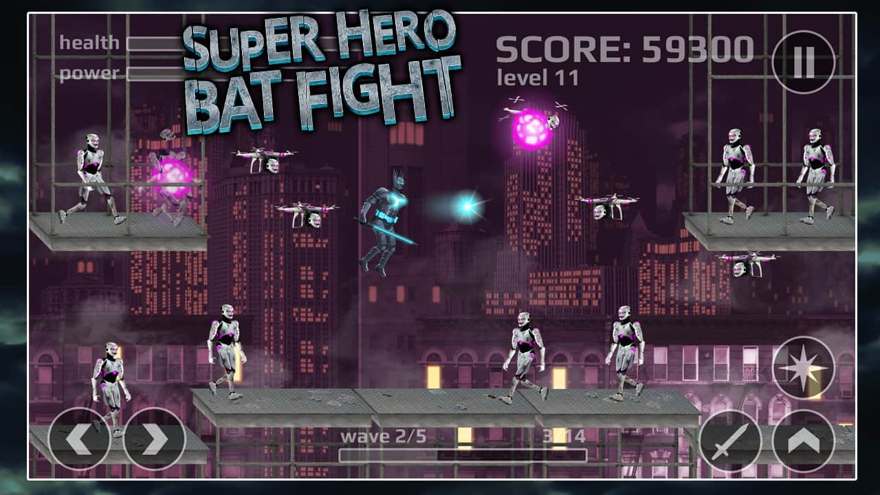 Süper Kahraman Yarışması – Android için heyecan verici bir aksiyon oyunu, dövüş unsurlarıyla. Bu oyunda, düşmanları yok etmek ve şehirdeki huzur ve sükuneti yeniden sağlamak için yarasa süper kahramanı olarak oynayacaksınız. Elinize lazer kılıcınızı alın ve huzurlu şehir sakinlerinin sükunetini bozan kalabalık siber düşmanları yok edin. Düşmanları ve suçluları yenmek için tüm çevikliğinizi ve ustalığınızı kullanın. Kılıcınızı kullanarak siber düşmanlarla savaşın ve enerji topları fırlatın. Oyun boyunca kahramanınızın enerjisini ve sağlığını yenilemeyi unutmayın ve yeni seviyelerin kilidini açın.