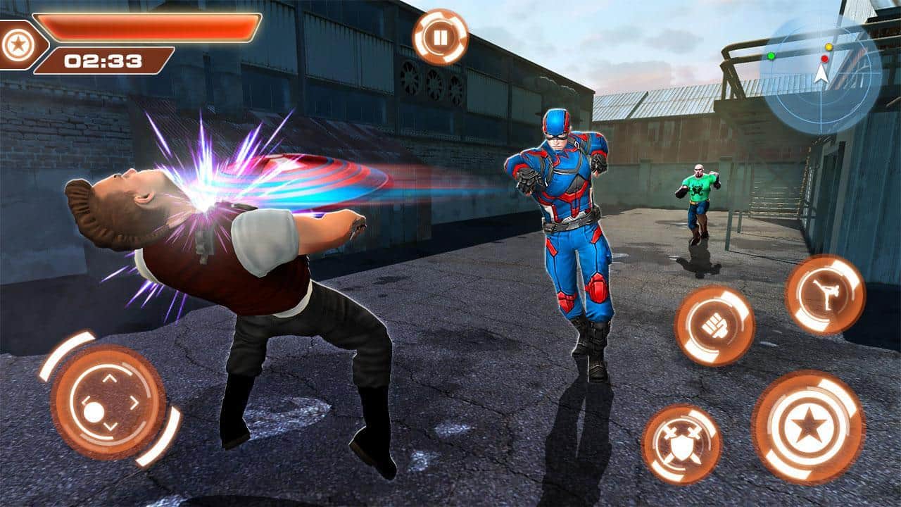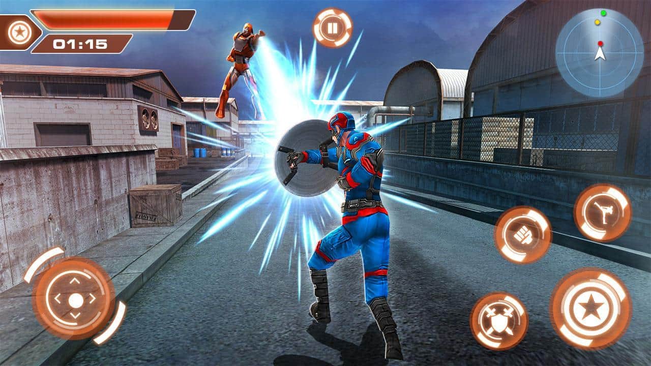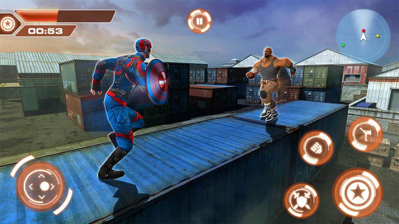 Süper Kahraman Kaptan Şehir Amerika Kurtarma Görevi - şehir hırsızlar ve çetelerle dolduğunda, kahraman kostümünüzü giymenin ve kötülüğe karşı savaşmanın zamanı geldi. Elinizde gerçek Kaptan Amerika kalkanı olacak ya da onun küçültülmüş Çin yapımı versiyonu, bunu siz karar verin. Genel olarak oyun oldukça basit, şehirde koşuyor, görevleri yerine getiriyor, düşmanların yüzlerine yumruk atıyor ve ara sıra kalkan fırlatma süper hareketini kullanıyorsunuz.