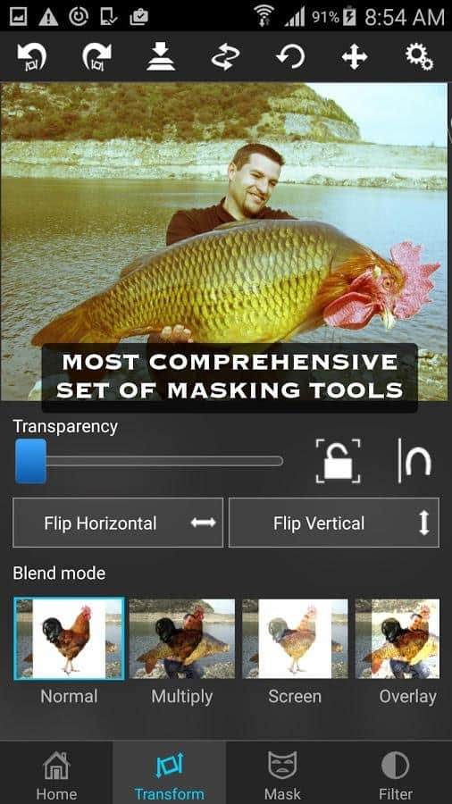 Superimpose - Gördüğünüz en iyi fotoğraf editörlerinden biri! Burada her şeyi bulacaksınız, arka planı değiştirebilir, dokuların parçalarını kesebilir ve birçok başka şey yapabilirsiniz. Bu uygulama, iOS'ta çok popülerdi ve şimdi Android'de de aynı şekilde popüler hale geldi. Birden fazla fotoğrafı aynı anda yükleyebilir ve düzenleyebilirsiniz. Uygulamada ayrıca, benzersiz bir şey yaratmanıza yardımcı olacak birçok başka özellik ve filtre bulunmaktadır. Bu, kelimenin tam anlamıyla Photoshop, sadece Android'de.
