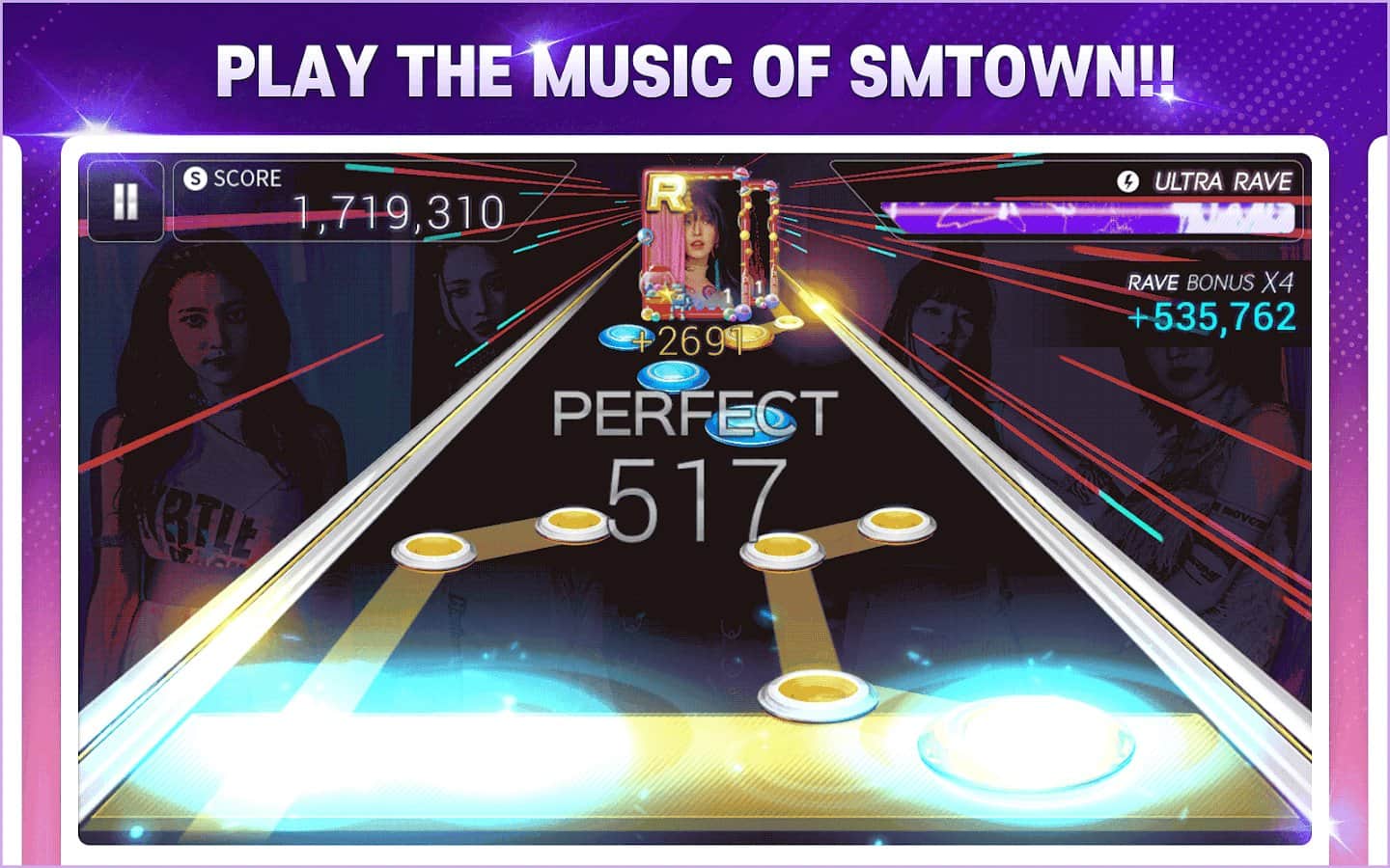 SuperStar SMTOWN - Müzik çalsın, siz de bu zamana kadar gördüğünüz en zor oyunlardan birini oynayın. Böyle oyunları daha önce görmüş olabilirsiniz, ama bu daha önceki her şeyden tamamen farklı. Oyundaki kontrol oldukça basit, birkaç hat var ve belirli bir hatta zamanında basmanız ya da basılı tutmanız gerekiyor, böylece müzik daha iyi çalacak. Seçim yapabileceğiniz birkaç melodi var ve bunlar sürekli olarak yenileniyor ve daha da iyi hale geliyor.