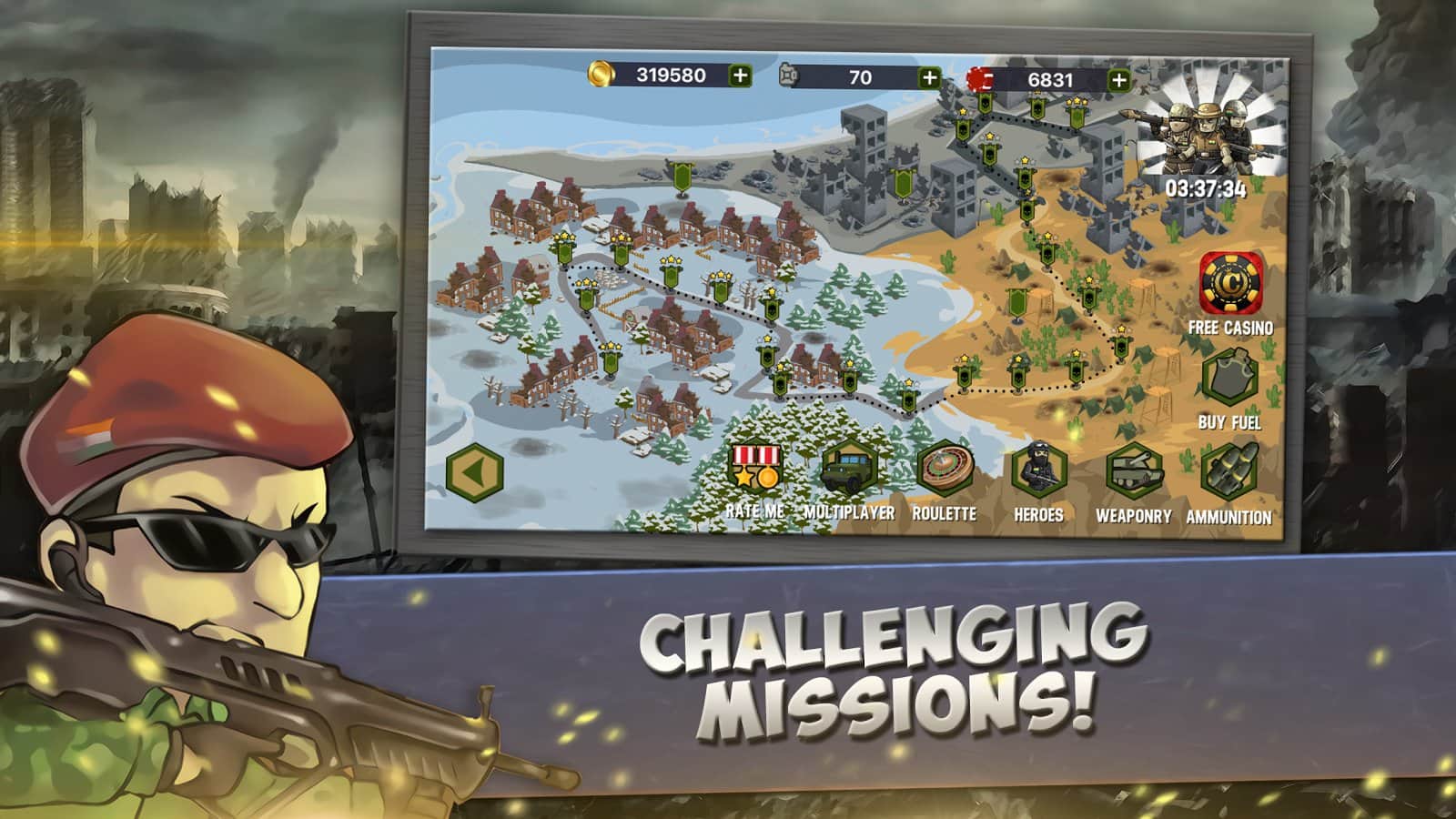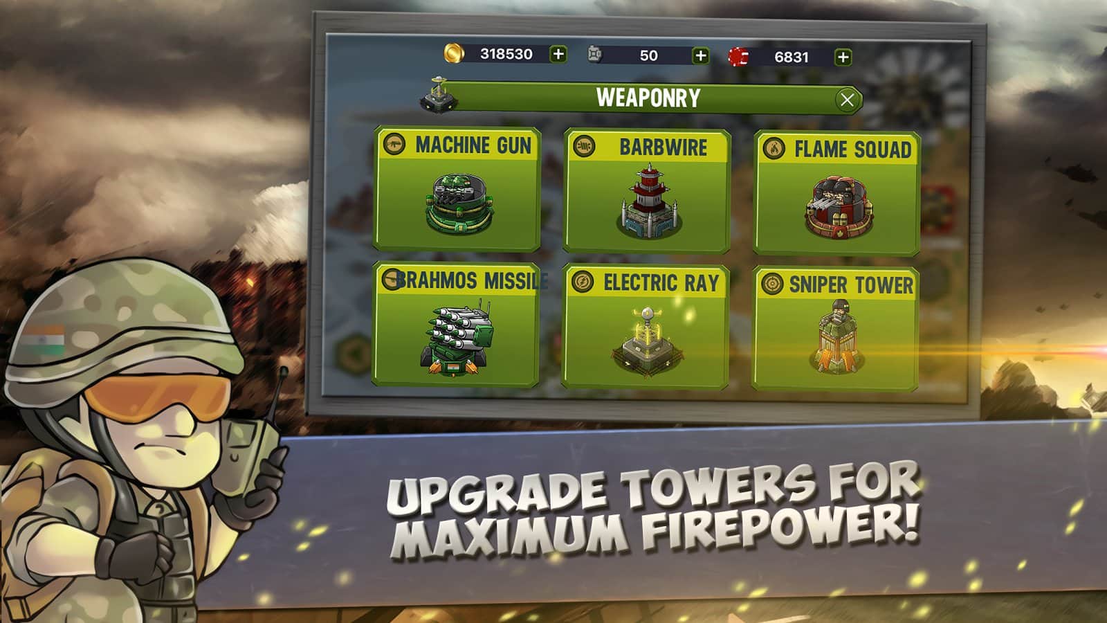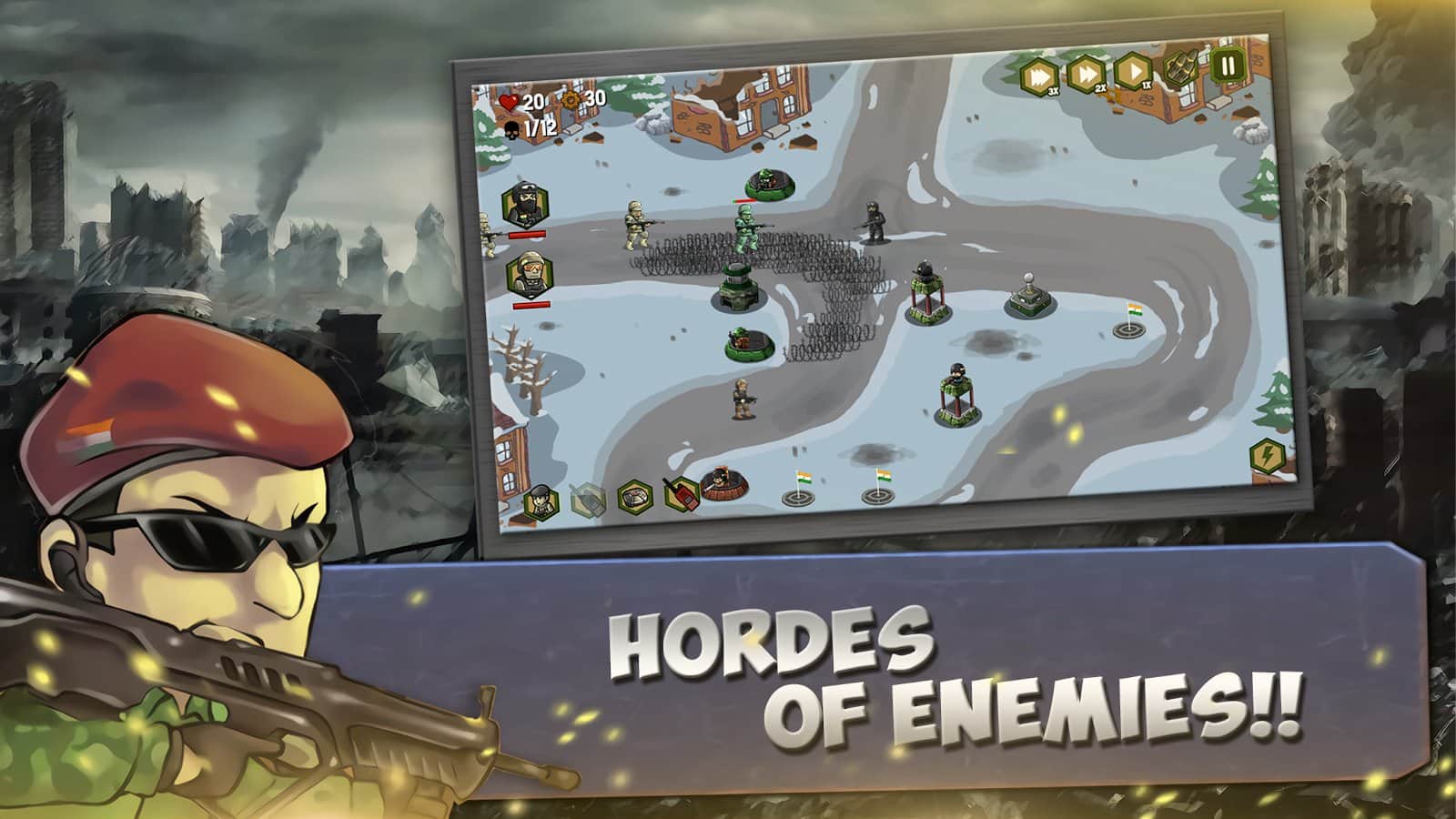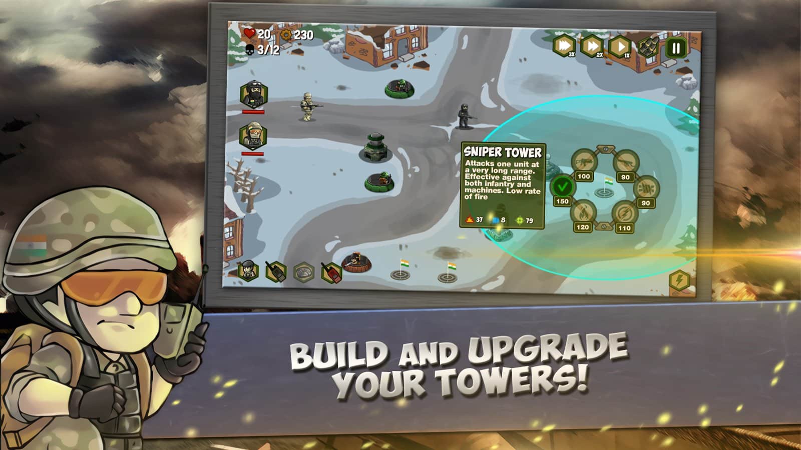 Cerrahi Saldırı - Hindistan Ordusu – Android için harika bir strateji oyunu, burada düşmanlardan üssünüzü koruyacaksınız. Bu oyunda Hindistan ordusunu kontrol altına alacak ve topraklarınızı ve üssünüzü teröristlerin saldırılarından koruyacaksınız. Ülkenin farklı bölgelerinde hareket edin ve düşmanlarla amansız savaşlar yapın, onların ilerlemesini engellemek için yollarına kuleler ve savunma sistemleri yerleştirin. Oyunda tamamen emrinize amade 10 birim bulunmaktadır ve deniz kuvvetleri ile hava kuvvetlerini yönetebileceksiniz. Arkadaşlarınızla çok oyunculu modda oynayın ve harika grafiklerin ve özel efektlerin tadını çıkarın.