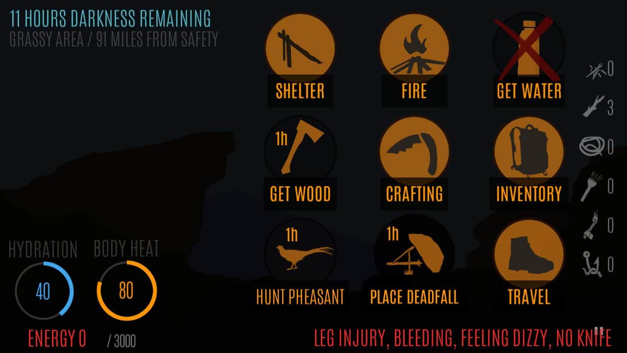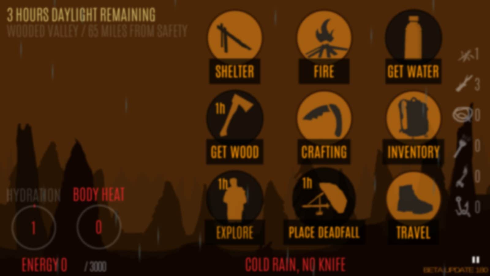 Hayatta Kal - Vahşi Doğada Hayatta Kalma - Hayatta kalmanız gereken heyecan verici bir macera. Bu oyun, hayatta kalmanın çok kolay olmadığı şekilde tasarlandı. Uyuyabilmek için bir sığınak inşa edeceksiniz, donmamak için ateş yakacaksınız. Ayrıca yiyecek, odun, su ve daha fazlasını temin etmeniz gerekecek. Farklı harita alanlarına geçiş yapmak için geçiş butonunu kullanabileceksiniz. Tüm eylemleriniz belirli bir zaman alacak, bu da enerji harcayacağınız anlamına geliyor. Başlangıçta size verilenlerle beslenebilseniz de, daha sonra yiyecek bulmanız gerekecek. Ağaç kesip, bir olta yapıp, balık tutmaya gideceksiniz. Hava durumuna bağlı olarak, hayatta kalmak istiyorsanız sığınak değiştirmeniz gerekecek. Oyunda çok sayıda unsur var, bu yüzden kendi başınıza hayatta kalmaya gidebilir ve oldukça ilginç olduğunu görebilirsiniz.
