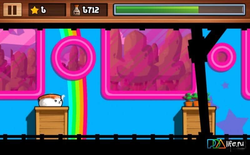Sushi Sutory – Android için bir arcade oyunudur; burada suşi görünümündeki ana karakteri yönetiyorsunuz. Bu oyunda, ana karakterin kaçmasına yardımcı olmalı, insanların sizi soya sosuna batırmasına ve yemesine izin vermemelisiniz. İnanılmaz zıplamalar yapın ve yalnızca platformların üzerinde hareket edin, yere düşerseniz oyun sizin için sona erecektir. Yol boyunca birçok madeni para toplayın ve kahramanınız için çeşitli ve çeşitli eşyaları açın. Sizi çeşitliliğiyle mutlu edecek eğlenceli mini oyunları geçin. Bu oyunu oynayın ve harika, canlı grafikleri ve bonusları ile keyfini çıkarın.