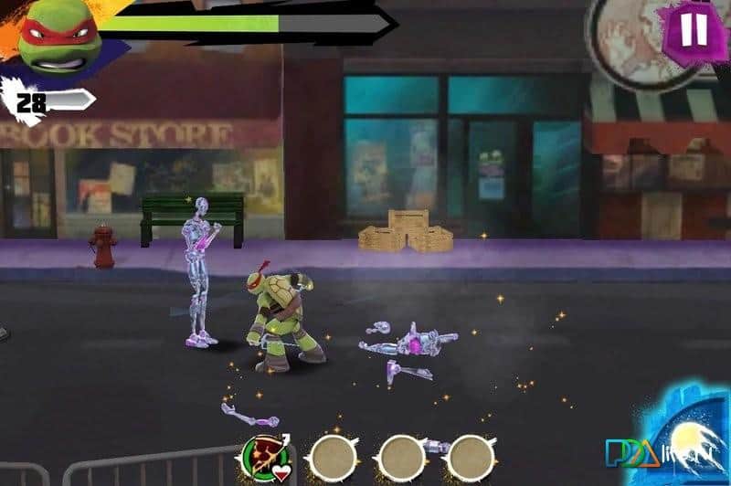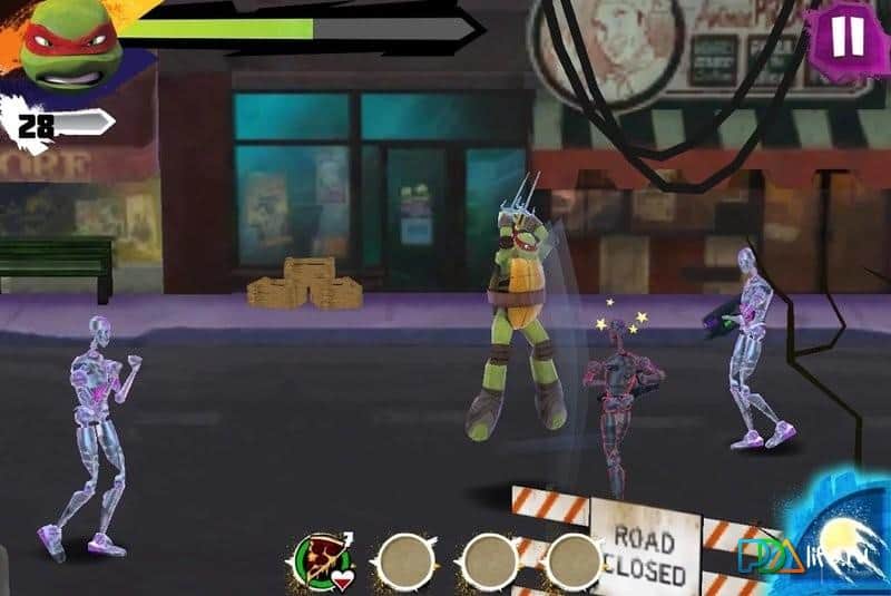 Swappz: Mutant Rumble - Android'de şehir sokaklarında arcade dövüş oyununda ninja kaplumbağaların yeni maceraları. Dört ninja kaplumbağadan en sevdiğin kahramanı seç ve şehri mekanik robotlardan kurtarmaya git. Oyun, özellikle güzel efektler olmadan klasik dövüş tarzında tasarlanmıştır. Bu, oyunun düşük özellikli cihazlarda çalıştırılmasında avantaj sağlar.