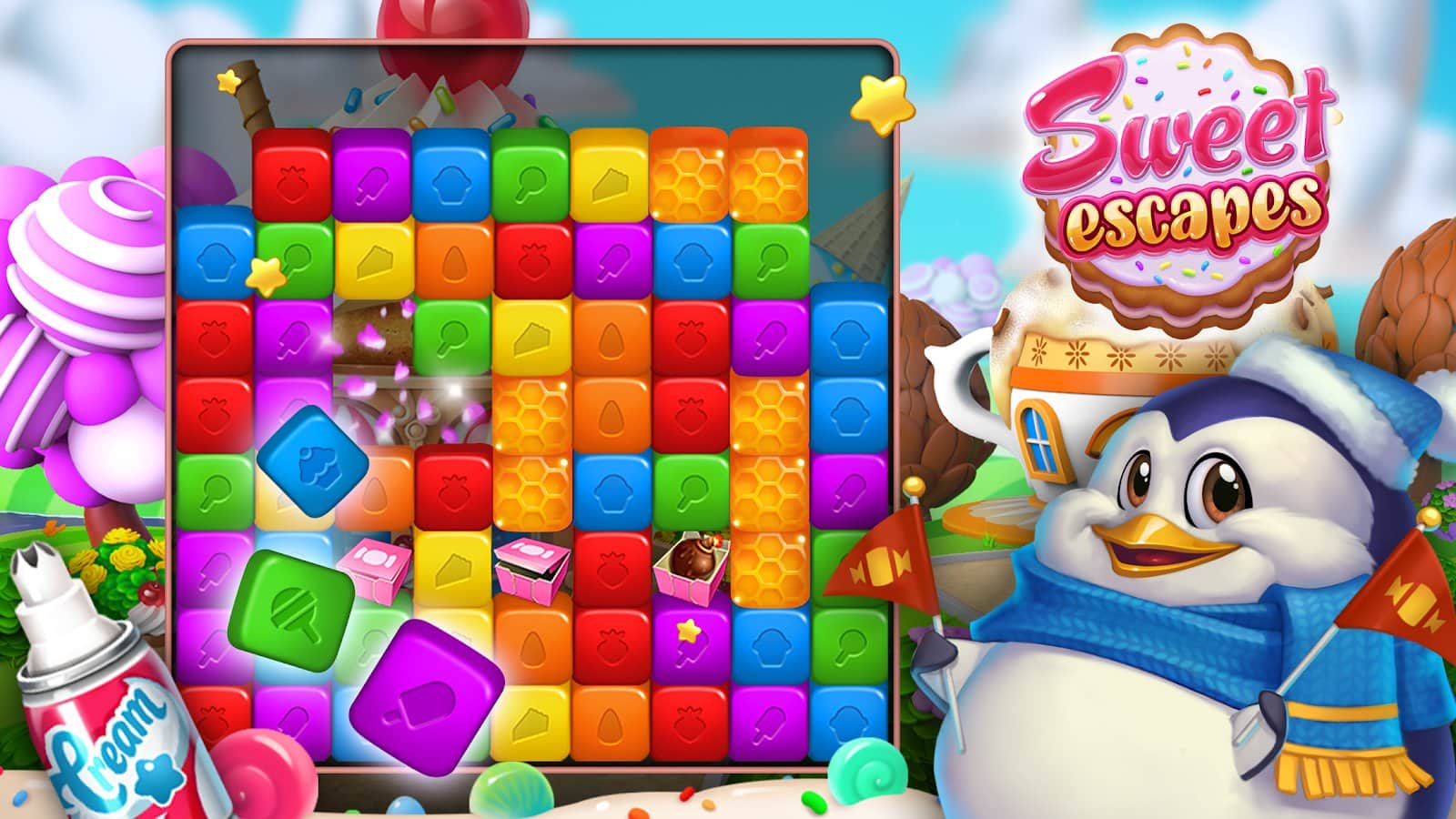 Tatlı Kaçamaklar: Bulmaca Oyunları ile Bir Fırın Tasarlayın – android için bir mantık oyunu, üçlü eşleşme türünde tatlı bir oyundur. Bu oyunda üç veya daha fazla nesneden oluşan sıralar oluşturacak ve dükkanlarınızı inşa etmenizi sağlayacak puanlar kazanacaksınız. Dükkanlarınızı oluşturun ve içinde harika tatlılar, pastalar ve milkshake'ler hazırlayın. Her dükkanı yaratırken yaratıcı olun ve onu iç tasarım ve mobilya ile benzersiz hale getirin. Yeni tarifler keşfedin ve daha fazla müşteri çekmek için lezzetli pastalar pişirin. Nesnelerden sıralar oluşturun ve zorlu seviyeleri geçin.