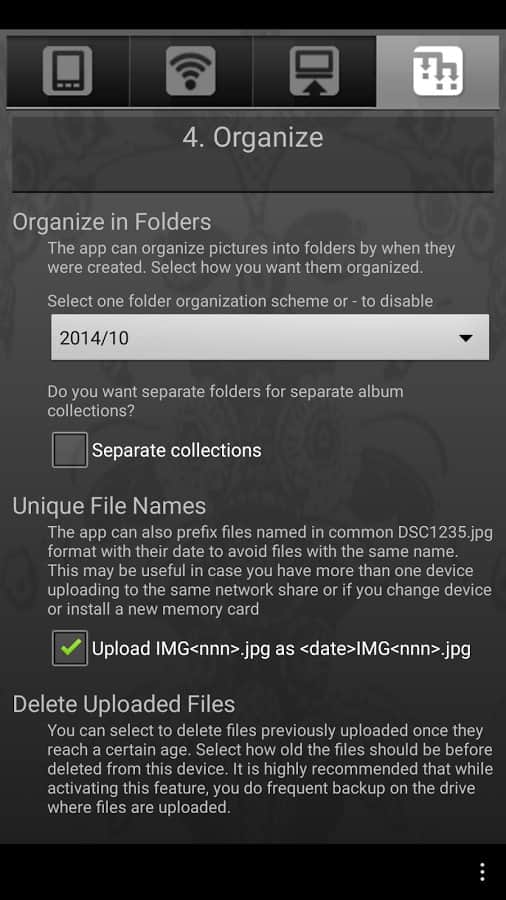 Tatlı Ev WiFi Resim Yedekleme - sevdiğiniz fotoğrafları veya videoları internet üzerinden kolayca kişisel bilgisayarınıza veya NAS cihazınıza kaydetmenizi sağlayan bir uygulamadır. Kopyalamayla manuel olarak uğraşmak istemiyorsanız, ayarlarda "otomatik kopyalama" seçeneğini işaretleyin ve fotoğraflar ile video dosyaları otomatik olarak bilgisayarınıza aktarılacaktır. Telefonunuzu şarj ederken USB kablosu aracılığıyla otomatik veri aktarımı yapma imkanı bulunmaktadır. Tüm dosyalar tarihlere göre sıralanmış klasörlerde saklanacaktır - bu çok kullanışlıdır. Uygulama Instagram ile mükemmel çalışmaktadır.