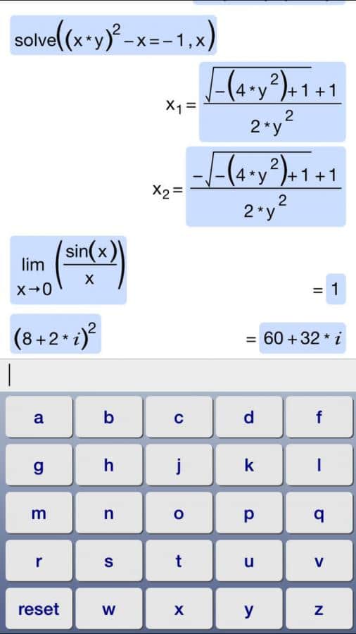 Yorumlar ile Symbolic Calculator üzerinde iOS