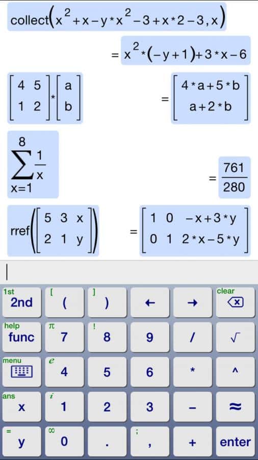 Sembolik Hesap Makinesi - bu basit uygulama akıllı telefonunuzda neredeyse hiç yer kaplamaz, ancak sık sık hesaplamalar yapıyorsanız, bu vazgeçilmez bir yardımcı olacaktır. Öğrenciler, öğretmenler ve hatta mühendisler için mükemmel bir şekilde uygundur; çünkü karmaşık formülleri hesaplamanın yanı sıra gerçek grafikleri oluşturabilir ve bunları görsel olarak görebilirsiniz. Tüm bunların yanı sıra, çok basittir ve sadece matematik alanındaki bilginizle sınırlıdır.