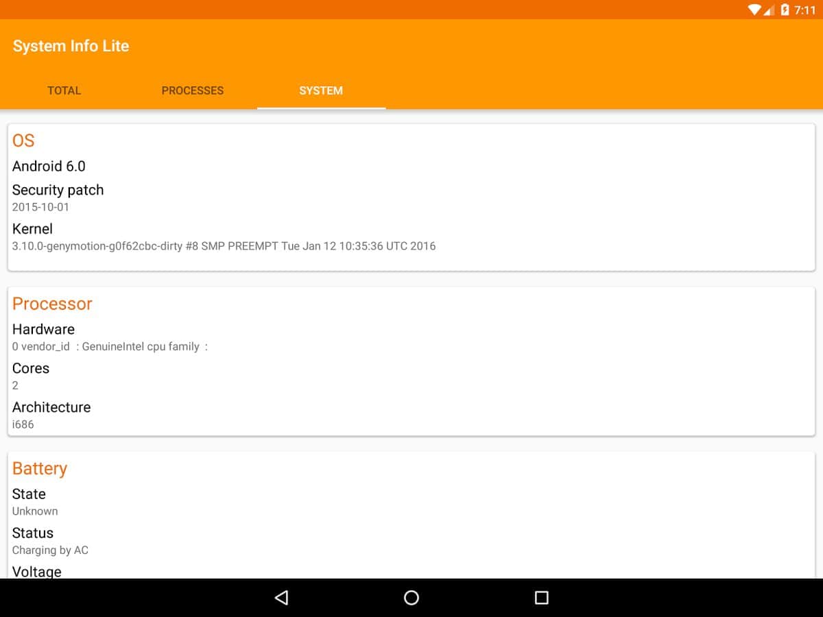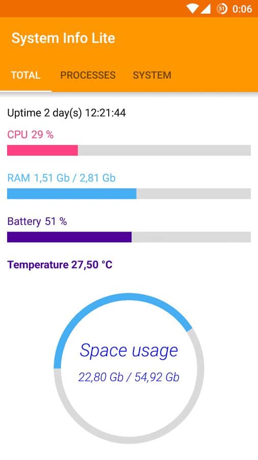 Sistem Bilgisi Lite - Akıllı telefonunuzu genel olarak daha fazla öğrenmek mi istiyorsunuz? O zaman bu uygulama sizin için vazgeçilmez olacak! Herhangi bir özel izin gerektirmemektedir ve mükemmel bir şekilde çalışmaktadır. Cihazınızla ilgili tüm bilgiler hızlı bir şekilde toplanacak ve belirli gruplar ve kategoriler altında düzenli bir şekilde sıralanacaktır. Ayrıca, burada akıllı telefonunuzun belirli bir parçasının şu anda hangi durumda olduğunu öğrenebileceğiniz gerçek zamanlı bir izleme bulacaksınız.