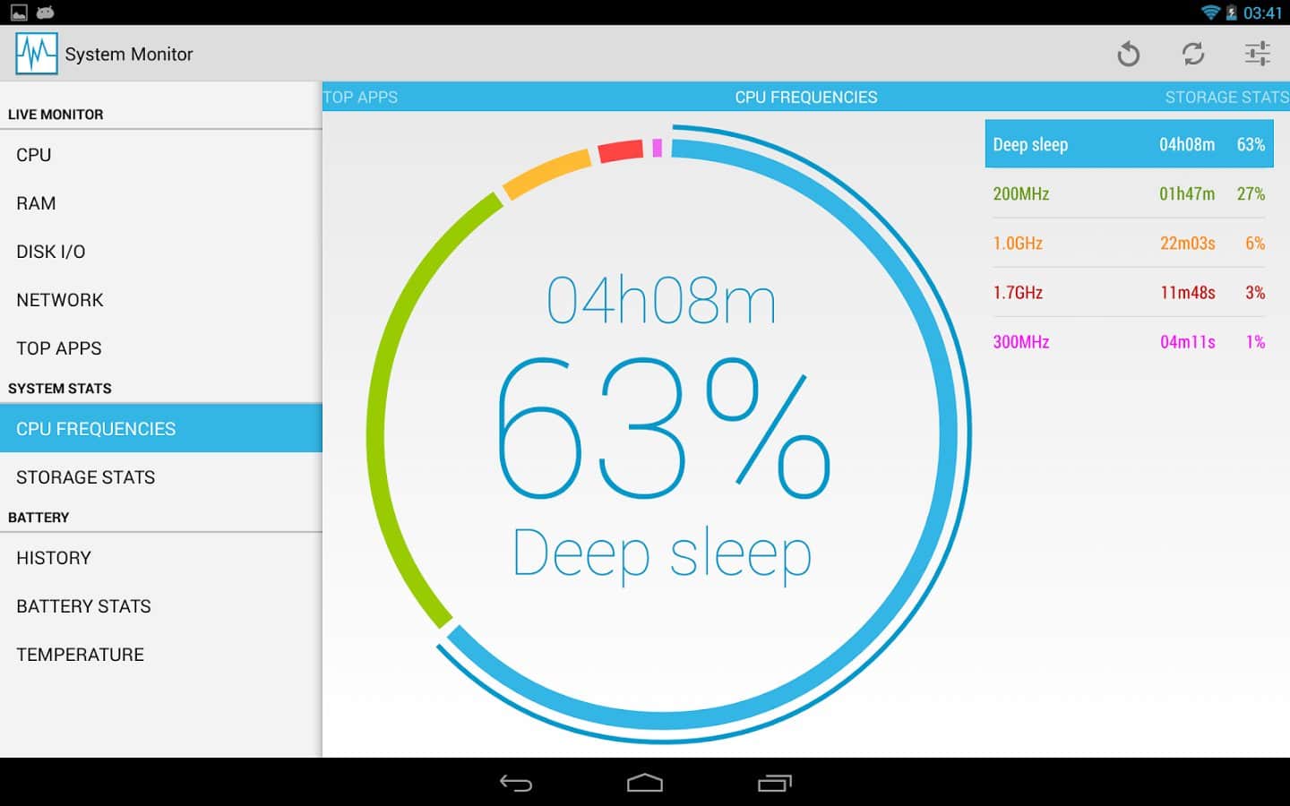 Sistem İzleyici - Cihazınızı takip etmenize yardımcı olacak benzersiz bir uygulama. Bu uygulama, cihazınızdaki tüm bilgileri size gösterecektir. Her çekirdeğin çalışmasını ayrı ayrı gösterecektir. Hangi uygulamanın hafızanızı doldurduğunu gösterecektir. Ve daha fazlası. Ayrıca, bu uygulama aracılığıyla telefonunuzu ayarlayabilir veya gerekli bellek alanlarını temizleyebilirsiniz. Yani sadece izleme yapmaz, aynı zamanda birçok başka uygulamanın yerini alır.