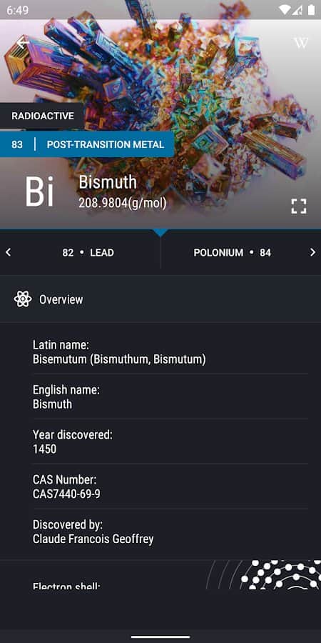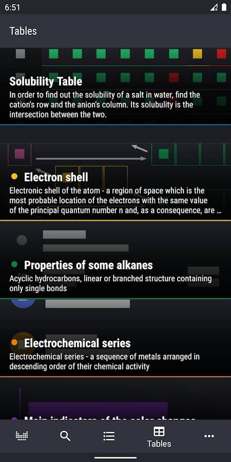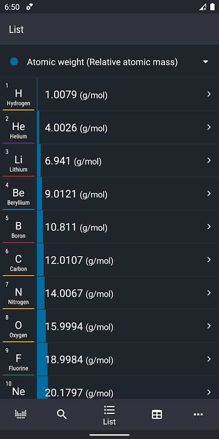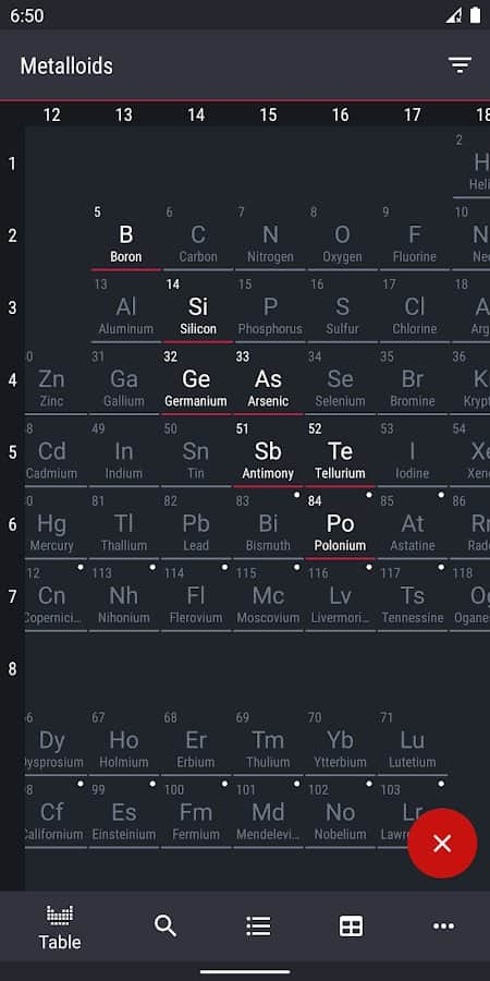 "Mendeleyev Tablosu 2020 - Kimya" uygulamasıyla, kimyasal elementlerin büyüleyici dünyasına dalacak ve onların benzersiz özellikleri ve kimyasal reaksiyonlara katılımları hakkında birçok yeni bilgi edineceksiniz. Program, hem profesyonel kimyagerler hem de yeni başlayanlar için uygundur. Size 8 farklı gruptan oluşan bir tablo sunulmaktadır. Metallerin özelliklerini (erime noktası, yoğunluk vb.) inceleyin. İhtiyacınız olan elementi hızlı bir şekilde bulabilir, Mendeleyev Tablosu'ndaki sembolünü ve adını gösterebilir, çözünürlük seviyesini ve diğer özellikleri öğrenebilirsiniz.