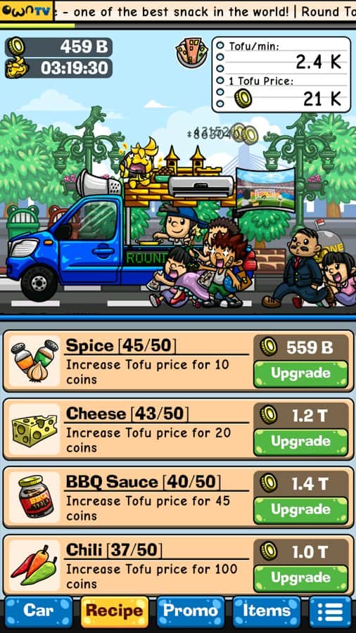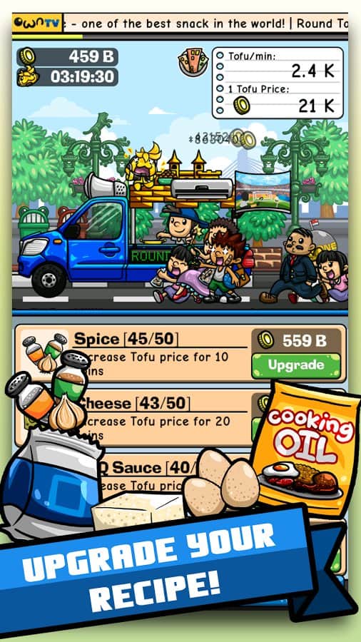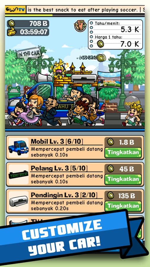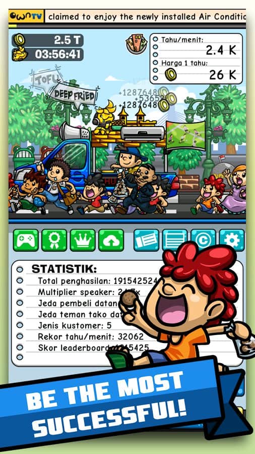 Tahu Bulat – Android'de bir oyun, burada çeşitli şehirlere seyahat edecek ve tofu yemeklerinizi satacaksınız. Bu oyunda, Endonezya şehirlerinde dolaşan bir kamyoneti yöneteceksiniz ve çeşitli yemekler hazırlayacaksınız. Furgonunuzu en kalabalık yere koyun ve yemekleri hazırlayıp sabırsız müşterilere satın. Yemekleri hazırlarken, yemeklerinizi daha lezzetli hale getirecek ve harika bir tat verecek çeşitli baharatlar ve soslar kullanın. Müşterilerinizin siparişlerini uzun süre bekletmeden mümkün olan en hızlı şekilde yemeklerinizi hazırlayın. Farklı şehirlere gidin ve atıştırmalık dükkanları ağınızı oluşturun.