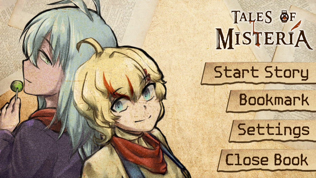 Misteria Hikayeleri - Kira ve Ame, doğdukları şehir olan Misteria'ya döndüklerinde, çocuk kitabındaki bir hikayeye şüpheyle benzeyen gizemli bir cinayetle karşılaşırlar. Sıradan bir tatil olarak başlayan bu durum, her kararın yeni bir sonuca veya trajik bir sona yol açabileceği tehlikeli bir soruşturmaya dönüşür. Bu atmosferik görsel roman, karanlık bir hikaye ile birçok son, orijinal grafikler ve ilginç detaylar sunuyor. Gizemi keşfedin, ipuçları bulun ve bu hikayeden, sizi tamamen yutulmadan çıkmaya çalışın.