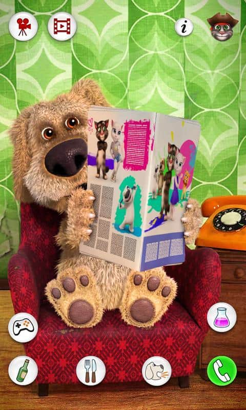 Konuşan Ben (Talking Ben the Dog) – yine sizin için en iyi geliştiriciler Outfit 7, kimyager köpek Ben'i yaratarak harika bir iş çıkardı. Ben çok inatçı bir köpek, kahve veya çay içmeyi sevmiyor, sevdiği gazeteyi okumayı, konserve fasulye yemeyi ve tabii ki laboratuvarda deneyler yapmayı seviyor. Kısacası, böyle bir köpekle asla sıkılmayacaksınız.