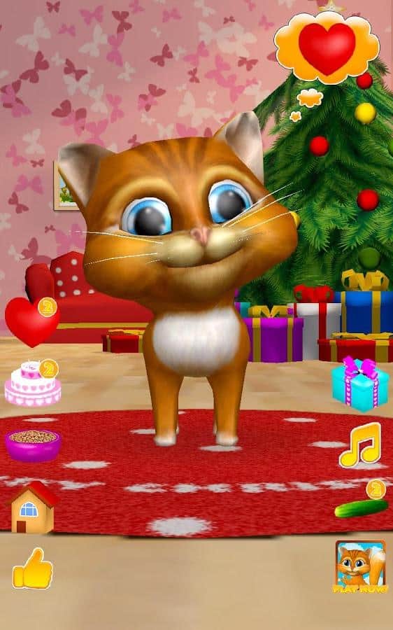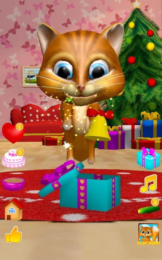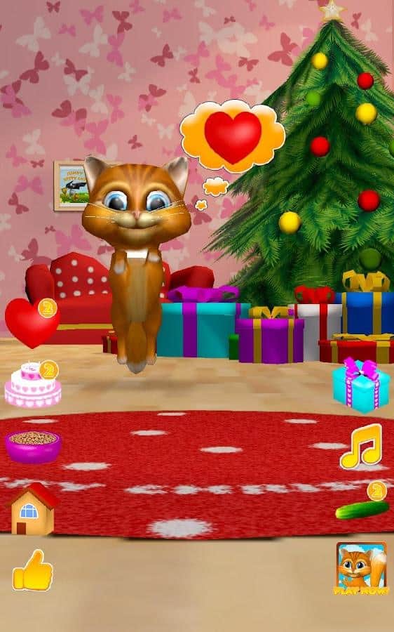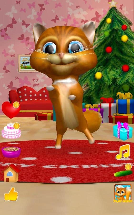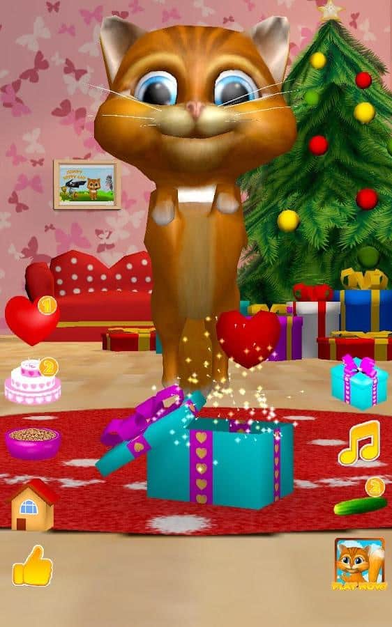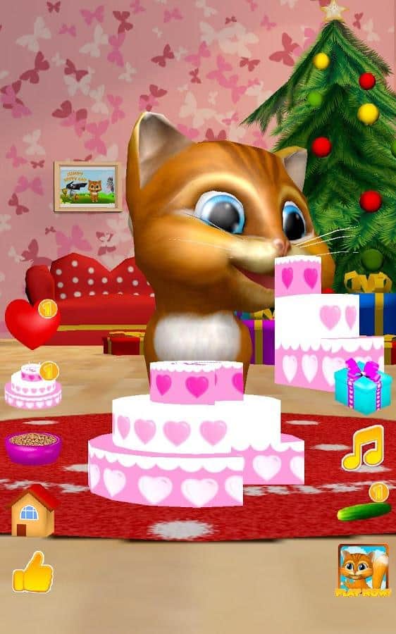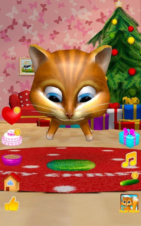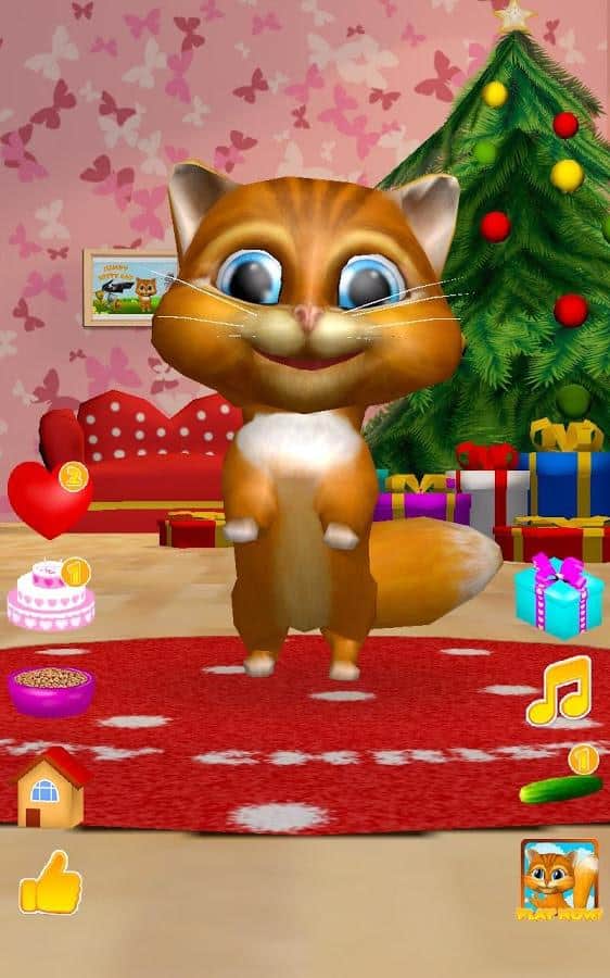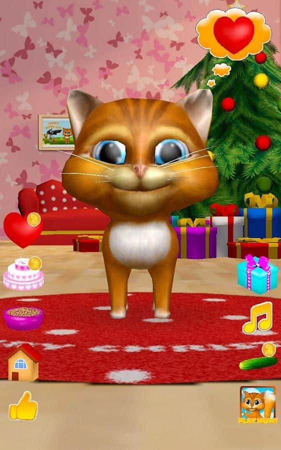 Konuşan Kedi Diana 3D – Android için ilginç bir oyun, burada telefonunuzda veya tabletinizde konuşan bir kedi edineceksiniz. Eğer bu tür oyunları seviyorsanız ya da sadece çocuğunuzu yeni bir konuşan evcil hayvanla sevindirmek istiyorsanız, bu oyun tam size göre. Bu oyunda, kedinin tüm sözlerinizi komik sesiyle tekrar ettiğini görebileceksiniz, nasıl dans ettiğini izleyin, onu sevin ve lezzetli bir pastayla besleyin. Kedi Diana'nızı, parmağınızla burnuna dokunarak okşayın ve onun mırlamasını dinleyin. Kedinizin kalplerini hediye edin ve onun nasıl mutlu olduğunu izleyin. Diana'yı beslemeyi ve dinlenmesi için zaman vermeyi unutmayın.