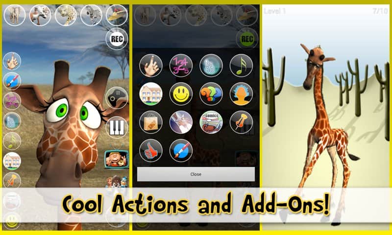 Konuşan George Zürafa – Android'de eğlenceli konuşan hayvanları özlediniz mi? Kaufcom Games Apps Widgets geliştiricileri, size uzun bacaklı ve uzun boyunlu zürafa George'u sunuyor. O, sizinle komik bir sesle tekrar edecek ve dokunuşlarınızı göz ardı etmeyecek, ayrıca sizi tüm gün eğlendirecek.