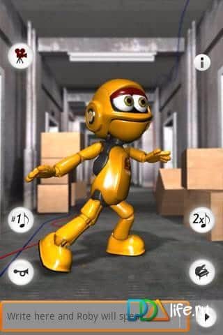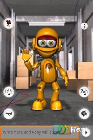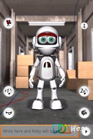 Konuşan Roby Robot - Android platformu için konuşan bir robottur. Klavyeden girilen kelimeleri telaffuz edebilir. Hip-hop konuşabilir ve dans edebilir. Sizin söylediklerinizi mekanik sesiyle tekrarlar.